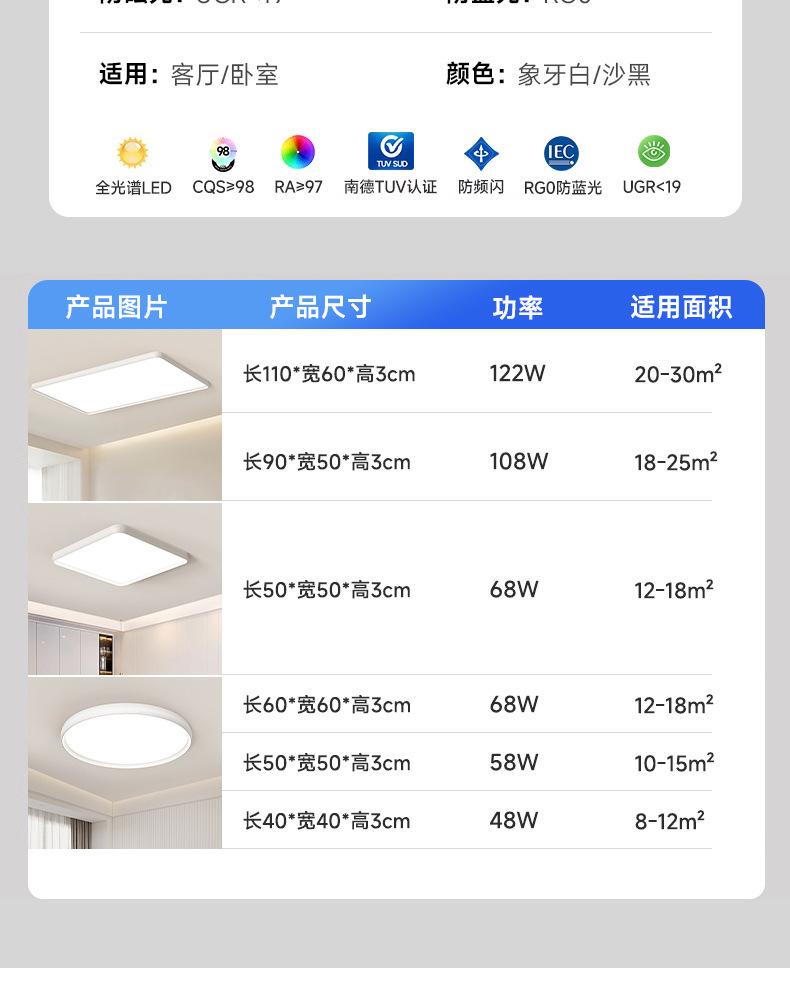 Protección Ocular de Espectro Completo Lámpara de Techo Rectangular para Sala de Estar Ultrafina Minimalista Moderna de Alta Gama Lámparas para Dormitorio Estilo Simple