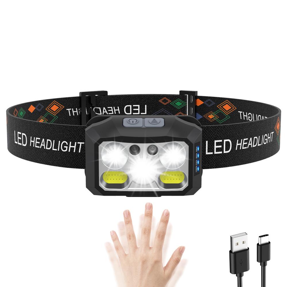Nueva lámpara LED portátil de inducción montada en la cabeza para carga transfronteriza, mini, para montar, para exteriores, montañismo, correr, faro pequeño