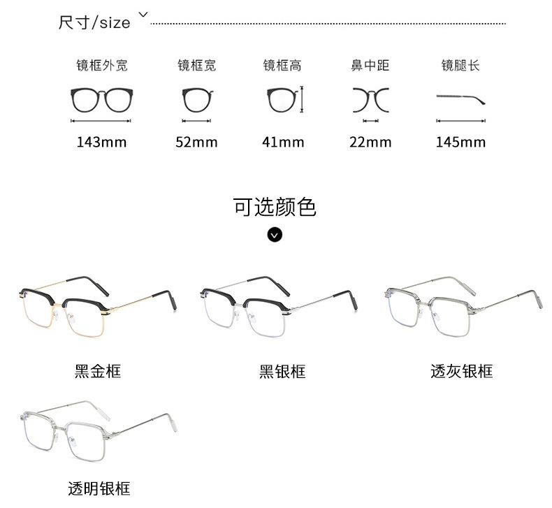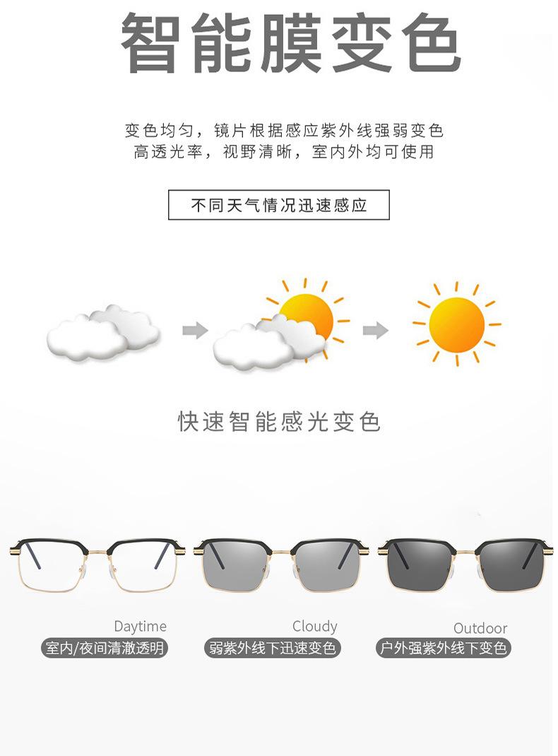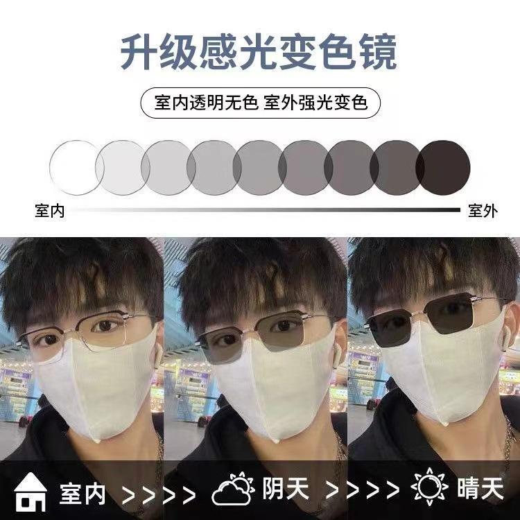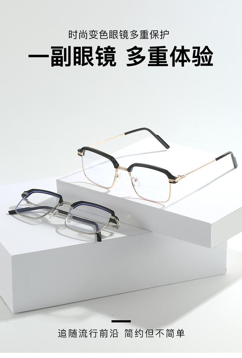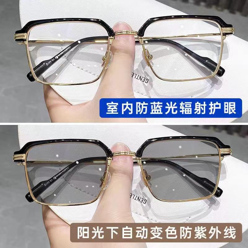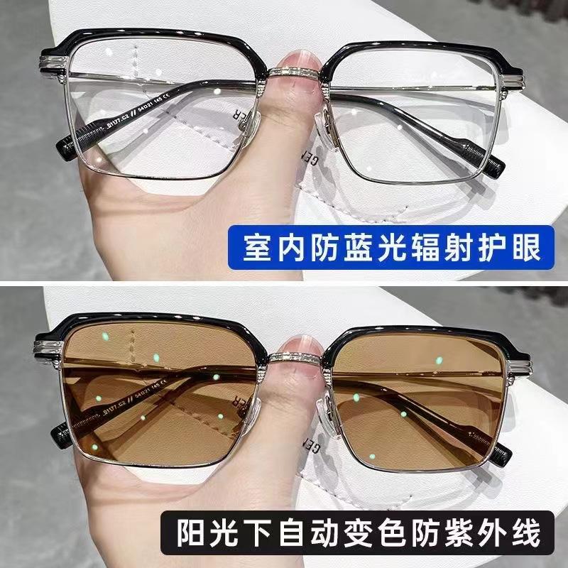 | Nuevas gafas de miopía 2055 que cambian de color para mujer, con montura cuadrada, adelgazantes, antiluz azul, planas, se pueden equipar con monturas graduadas. |