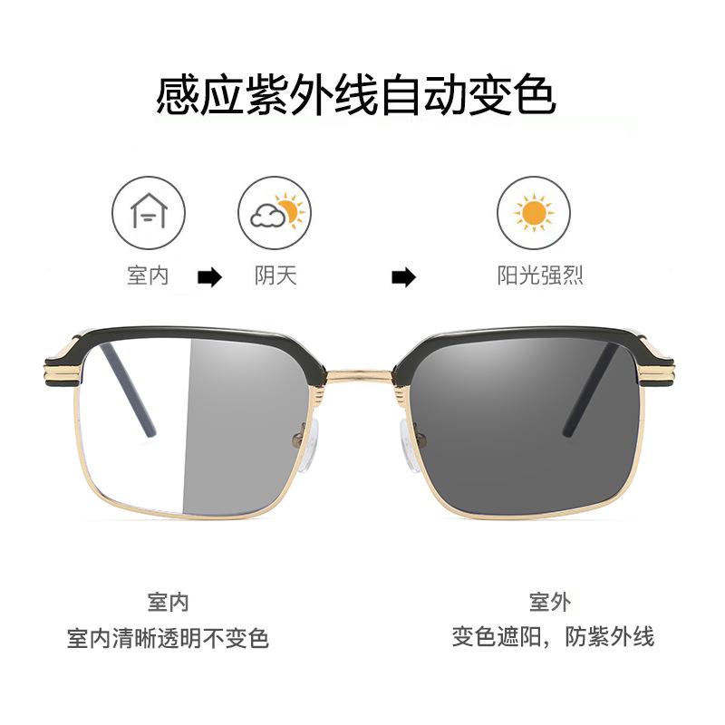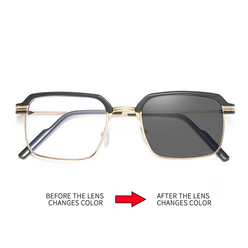 | Gafas de lectura de moda con cambio de color, de metal y anti-luz azul para hombres, gafas de negocios anti-UV, montura cuadrada retro |
