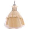 Vestido de malla de nuevo estilo de comercio exterior para niñas, vestido de novia de manga larga hecho a mano con cuentas, vestido de princesa, vestido de niña
