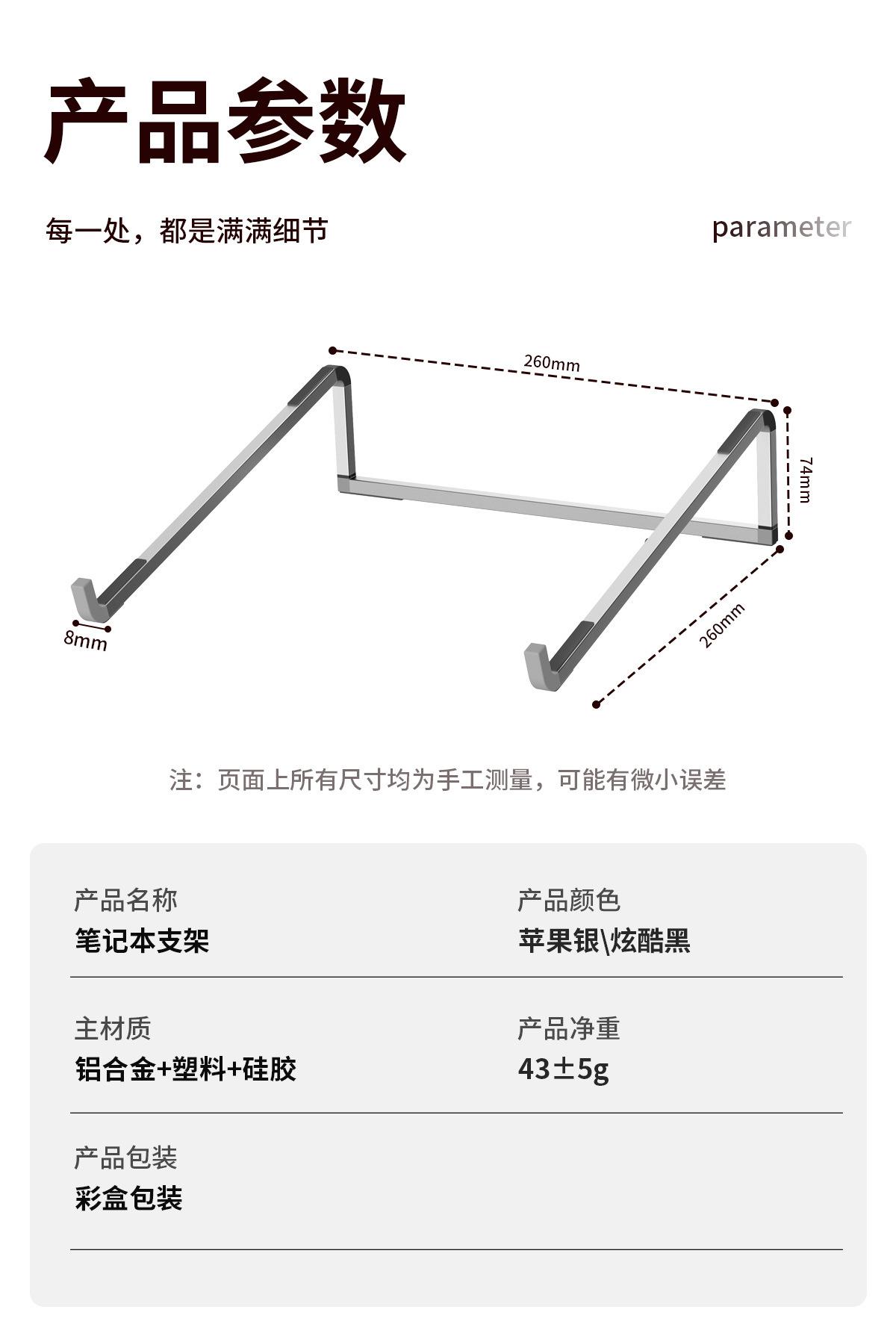 Apple silver—aviation aluminum alloy material [portable folding storage computer stand], Cool black—aviation a...