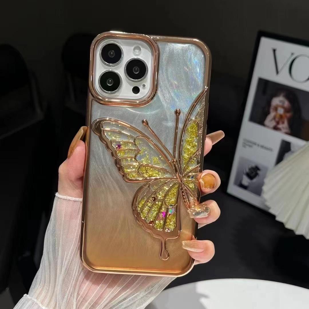 Compra Funda para teléfono Apple Pro Max de 15 pulgadas con diseño de mariposas y arena movediza, carcasa blanda galvanizada para iPhone 16 Pro Max para niñas de 14 y 13 pulgadas. al por mayor en Joom.pro