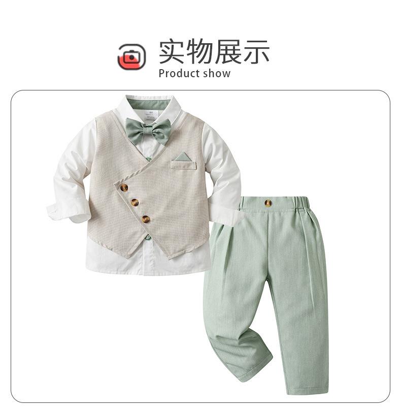 Traje pequeño de dos piezas europeo y americano personalizado de fábrica, ropa para niños, chaleco falso de primavera y otoño, traje de niño de manga larga