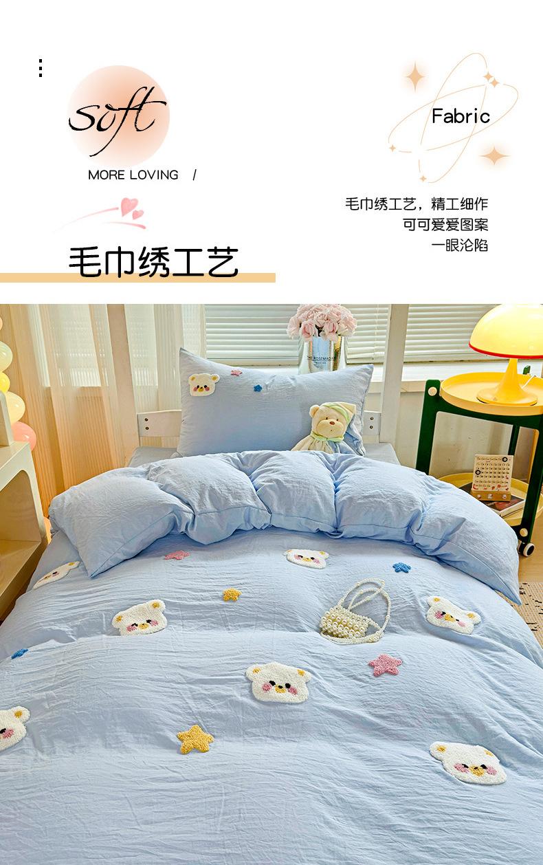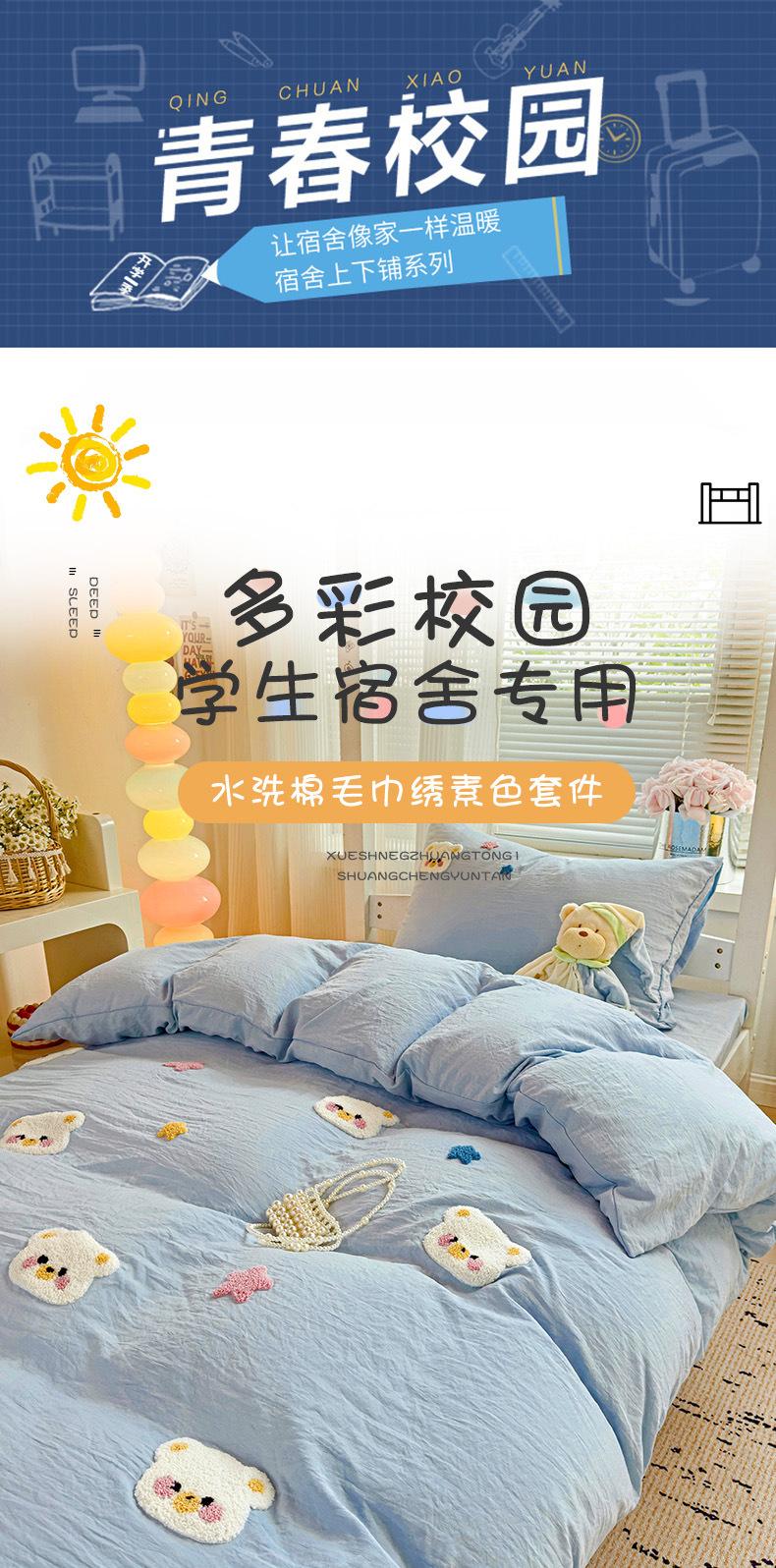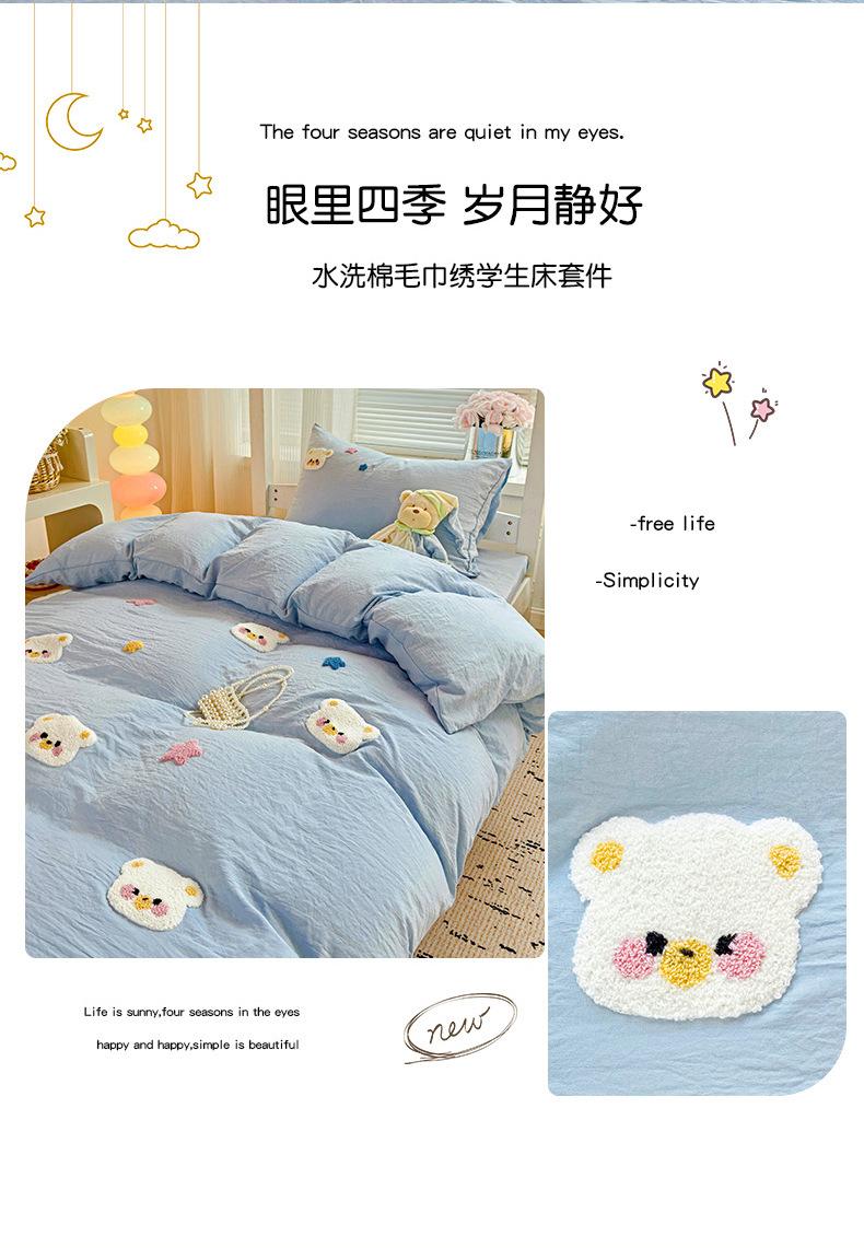 Toalla de algodón lavada bordada para dormitorio de estudiantes, juego de cama individual de tres piezas, sábana y edredón, juego de cuatro piezas, 2024