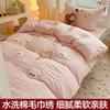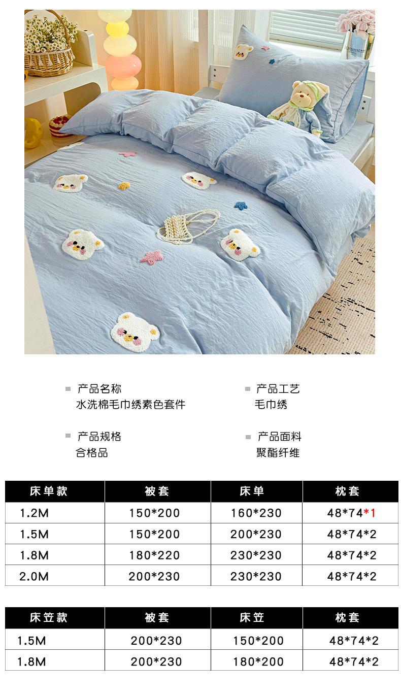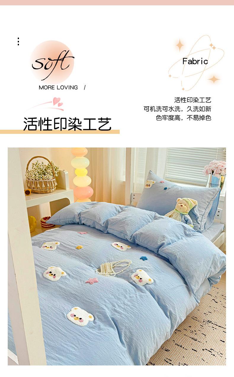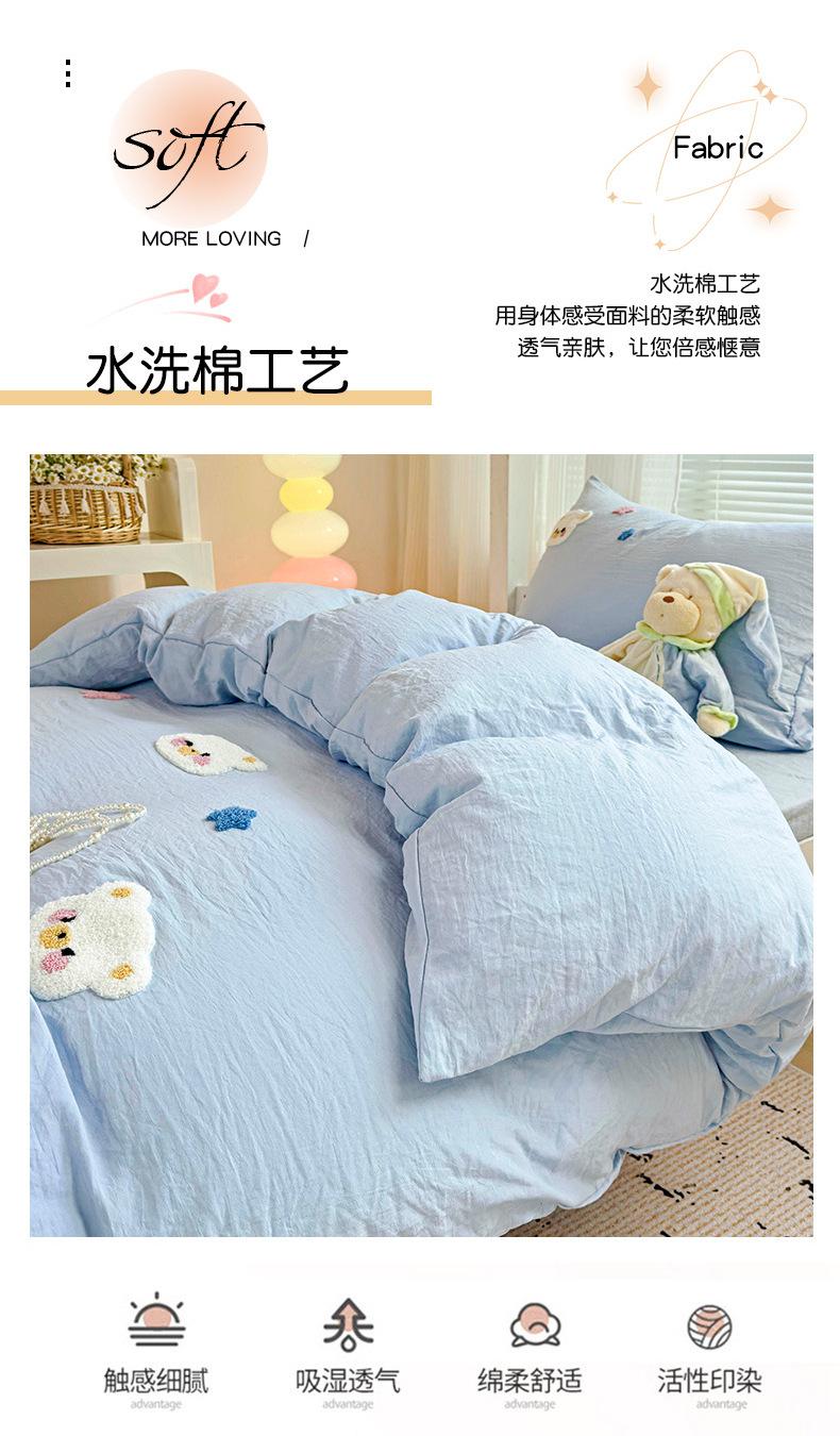 Toalla de algodón lavada bordada para dormitorio de estudiantes, juego de cama individual de tres piezas, sábana y edredón, juego de cuatro piezas, 2024