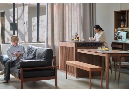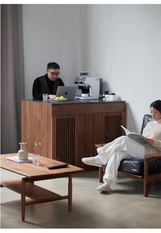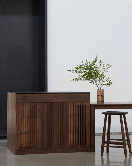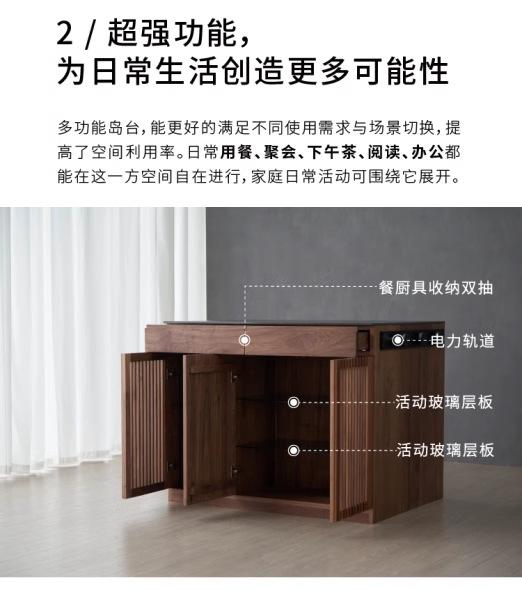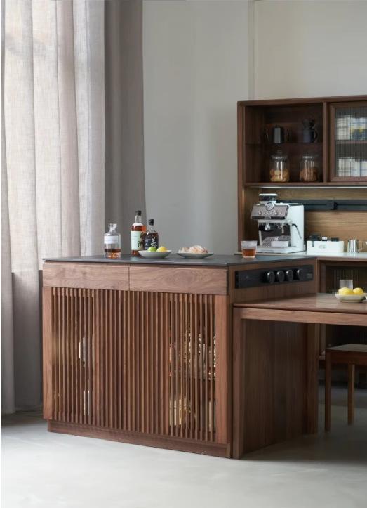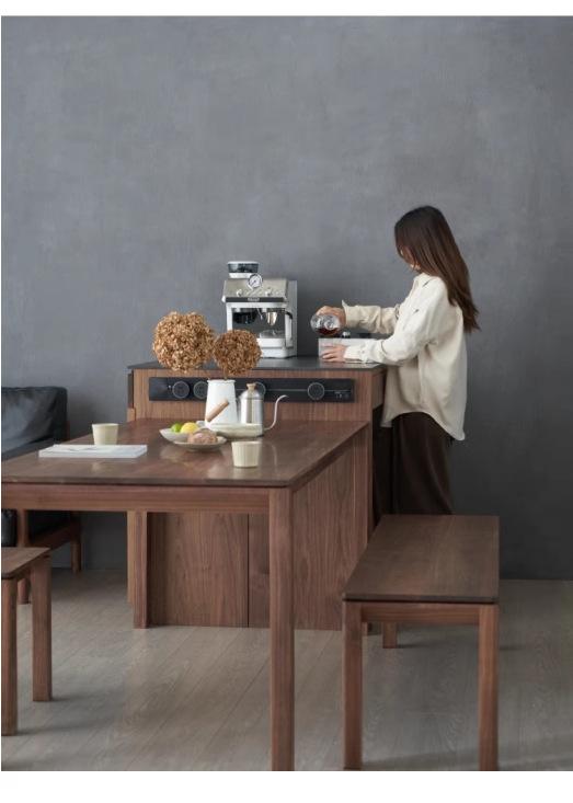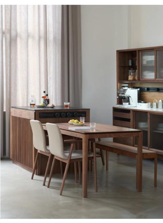 Mesa de comedor de isla de nogal negro norteamericano integrada para restaurante, moderna y multifuncional, con tablero de madera maciza Nakajima Bar