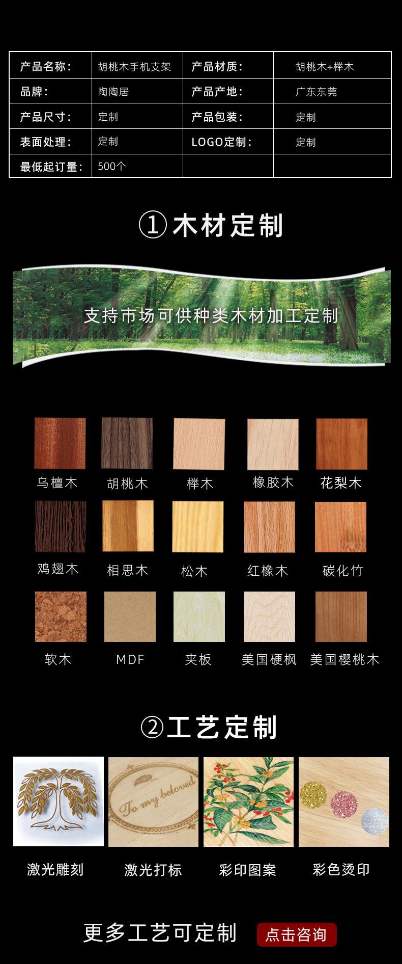 Soporte Perezoso Fábrica de Comercio Exterior de Dongguan Artesanías de Madera Personalizado Soporte Creativo para Teléfono Móvil Soporte para Teléfono Móvil de Nogal
