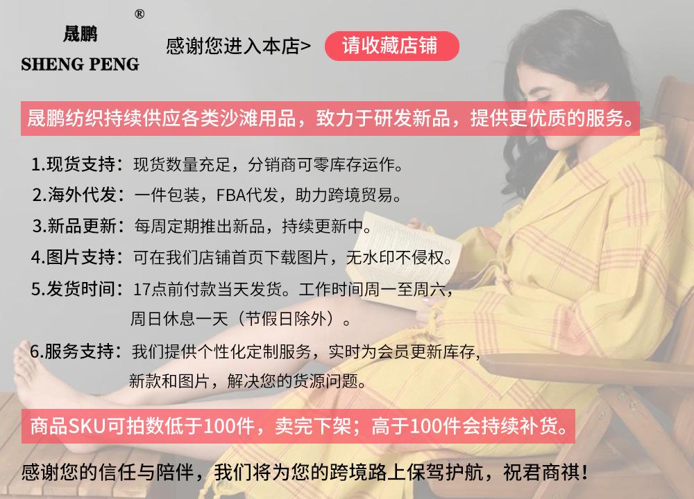 Yiwu Shengpeng Textile Co., Ltd. se especializa en la producción de toallas de playa hechas de diversos materiales (microfibra, algodón puro, poliéster, poliéster-algodón).