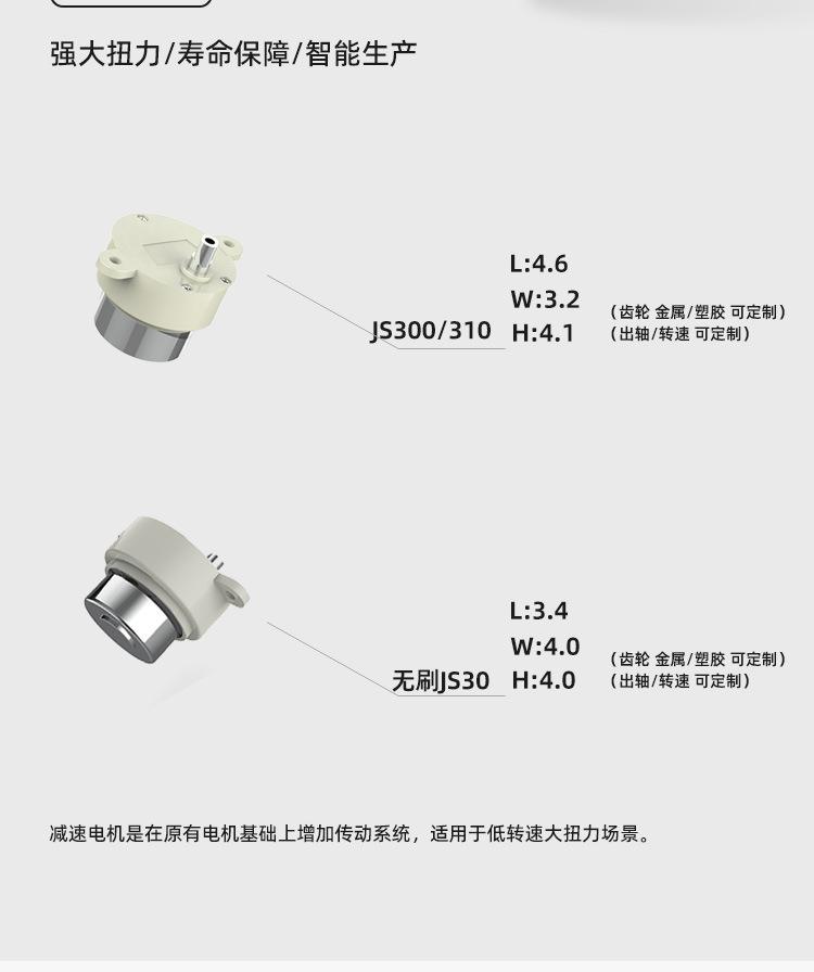 Motor reductor miniatura JS300 de 1 kg con ventilador de cabezal vibratorio de alto par y caja reductora especial. Fabricante de motores OEM. Personalización.