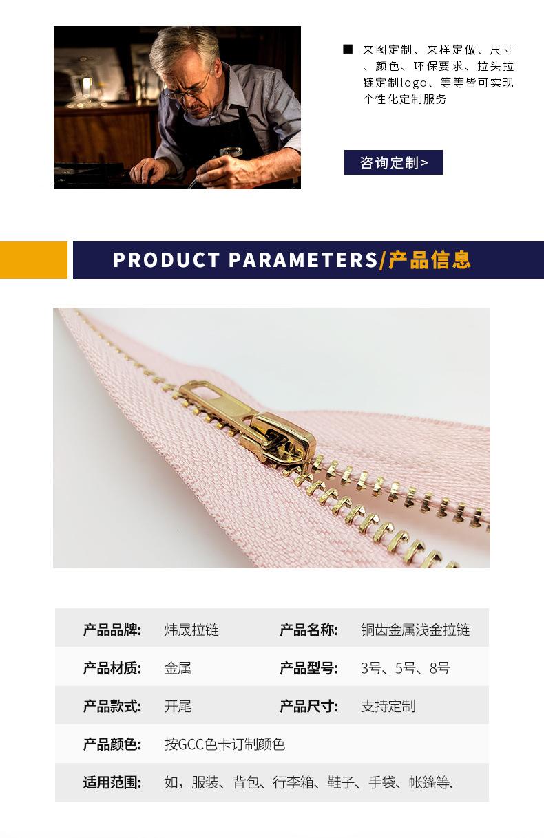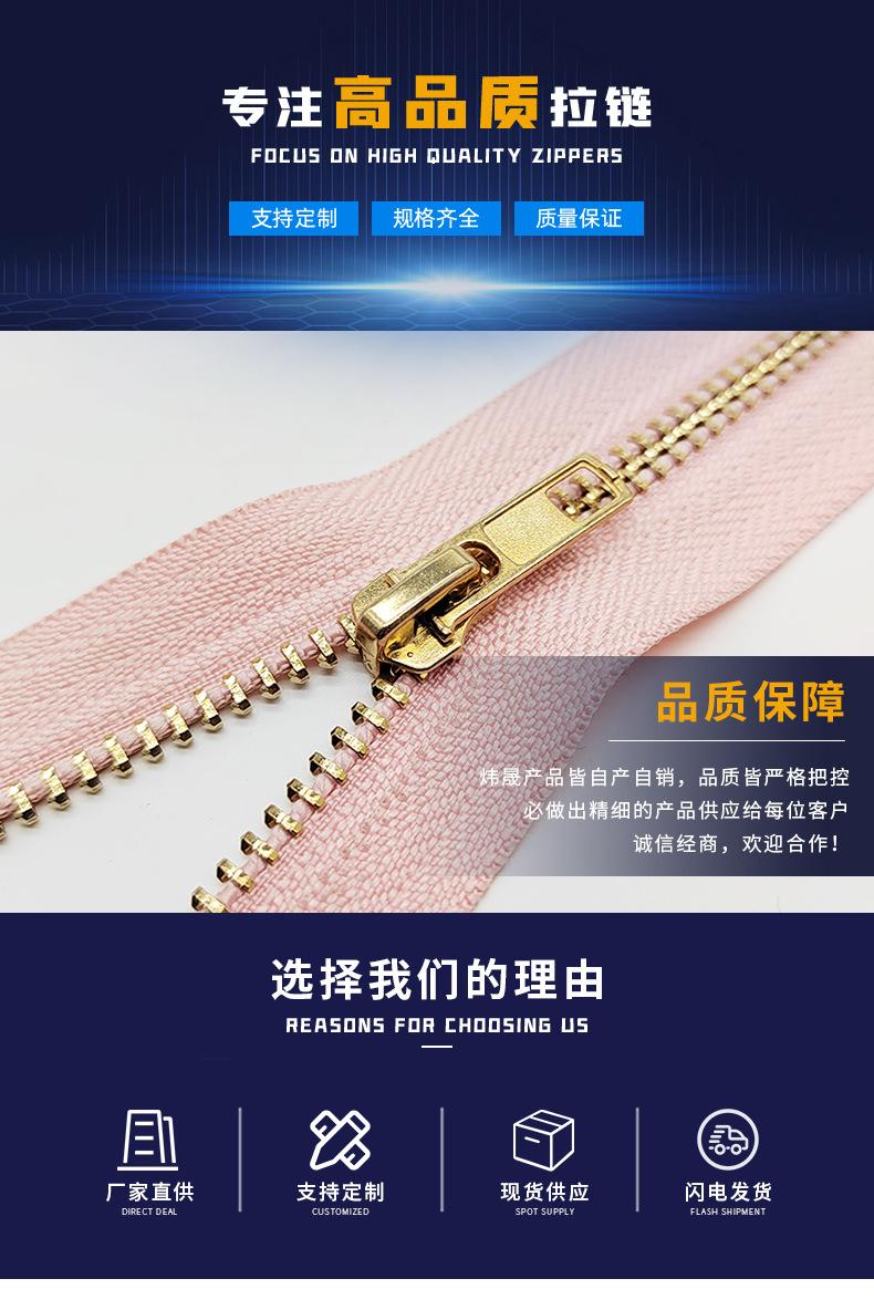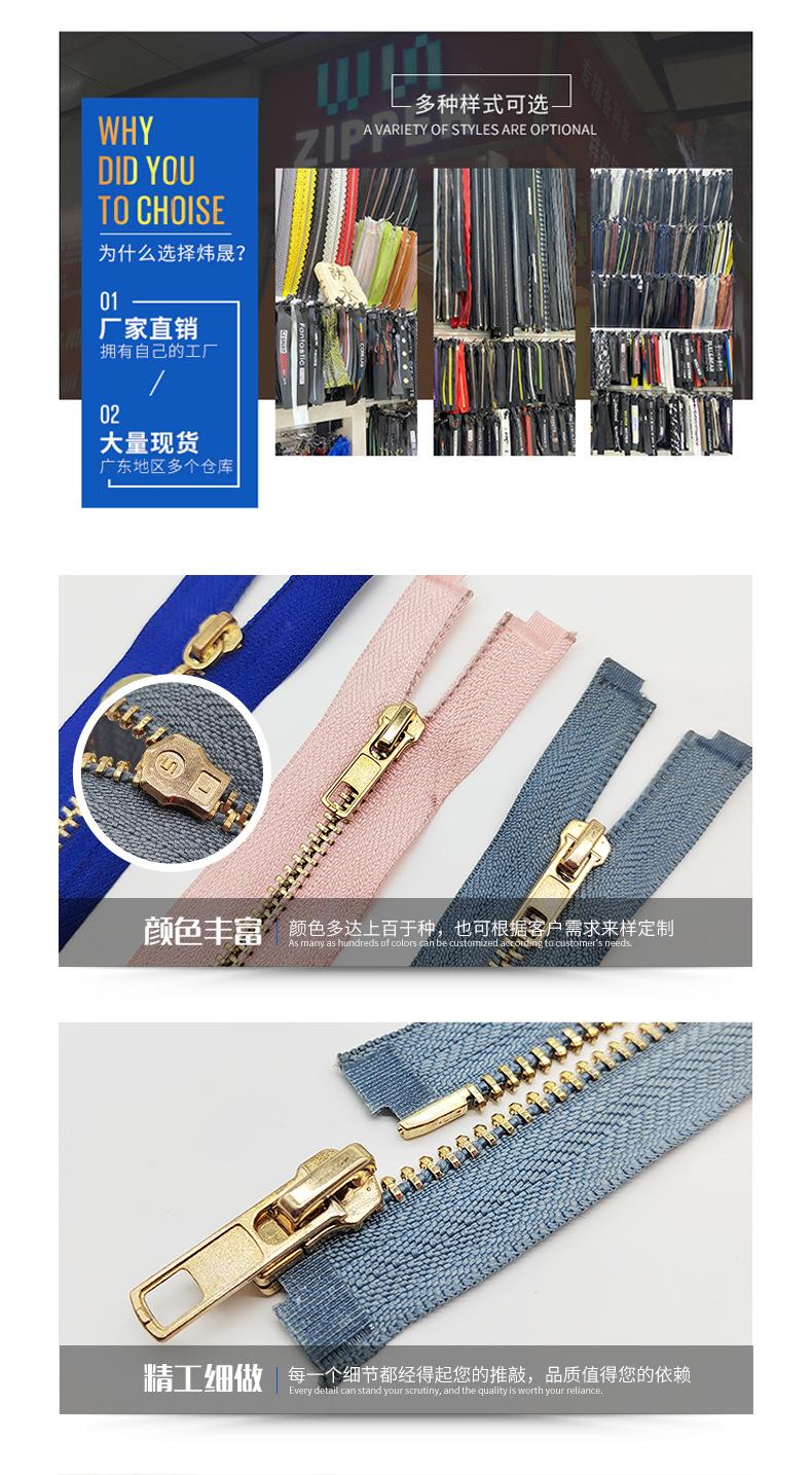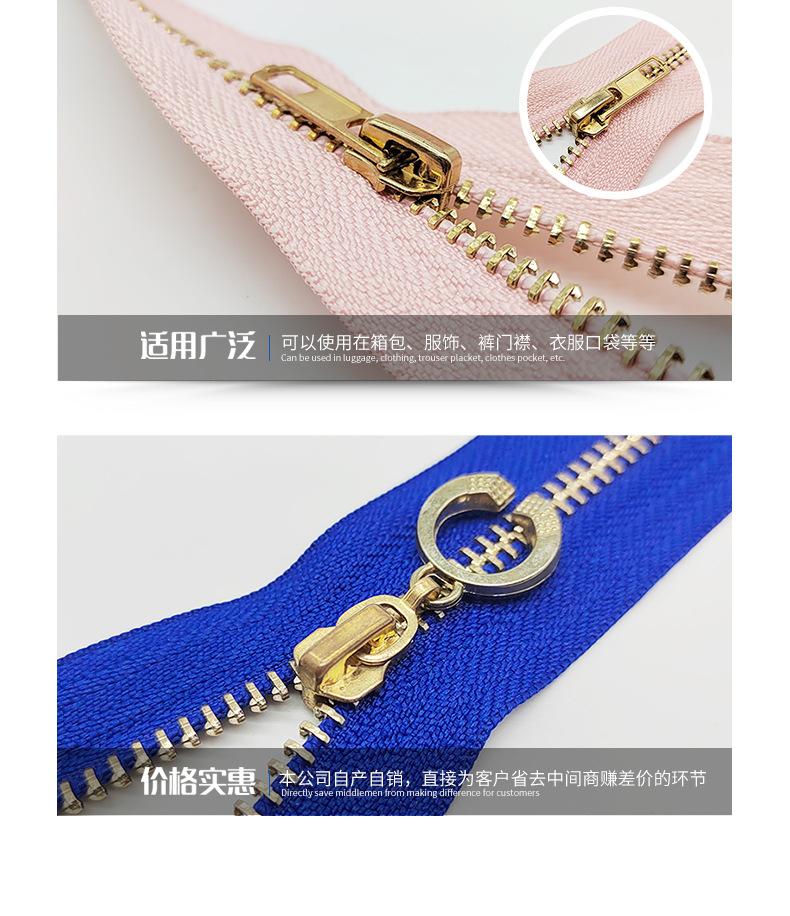 No. 3 No. 5 No. Cremallera metálica con 8 dientes de cobre para chaqueta, cremallera para equipaje, tipo diente estándar, código metálico, cinturón de tela colorido