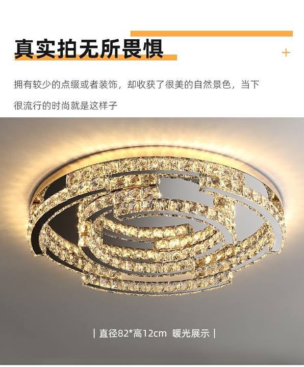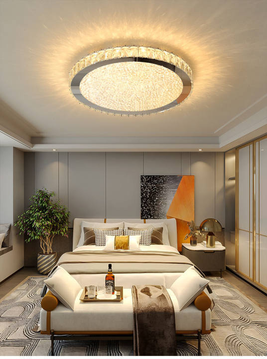 Lámpara de sala de estar moderna de ambiente sencillo 2023, nueva lámpara de techo de lujo, lámpara LED redonda de cristal para dormitorio