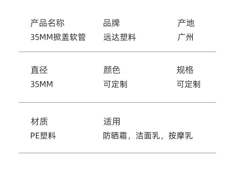 Manguera de 35 mm de diámetro para limpiador facial, crema de masaje, crema de manos, manguera de PE para cosméticos, material de embalaje, subbotella.