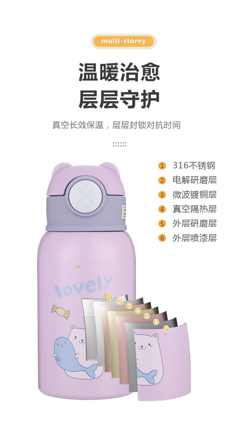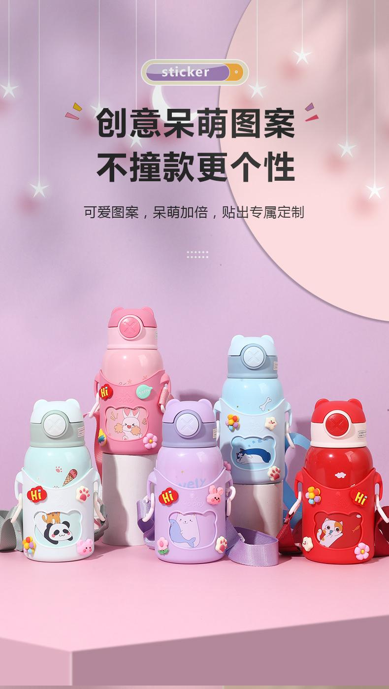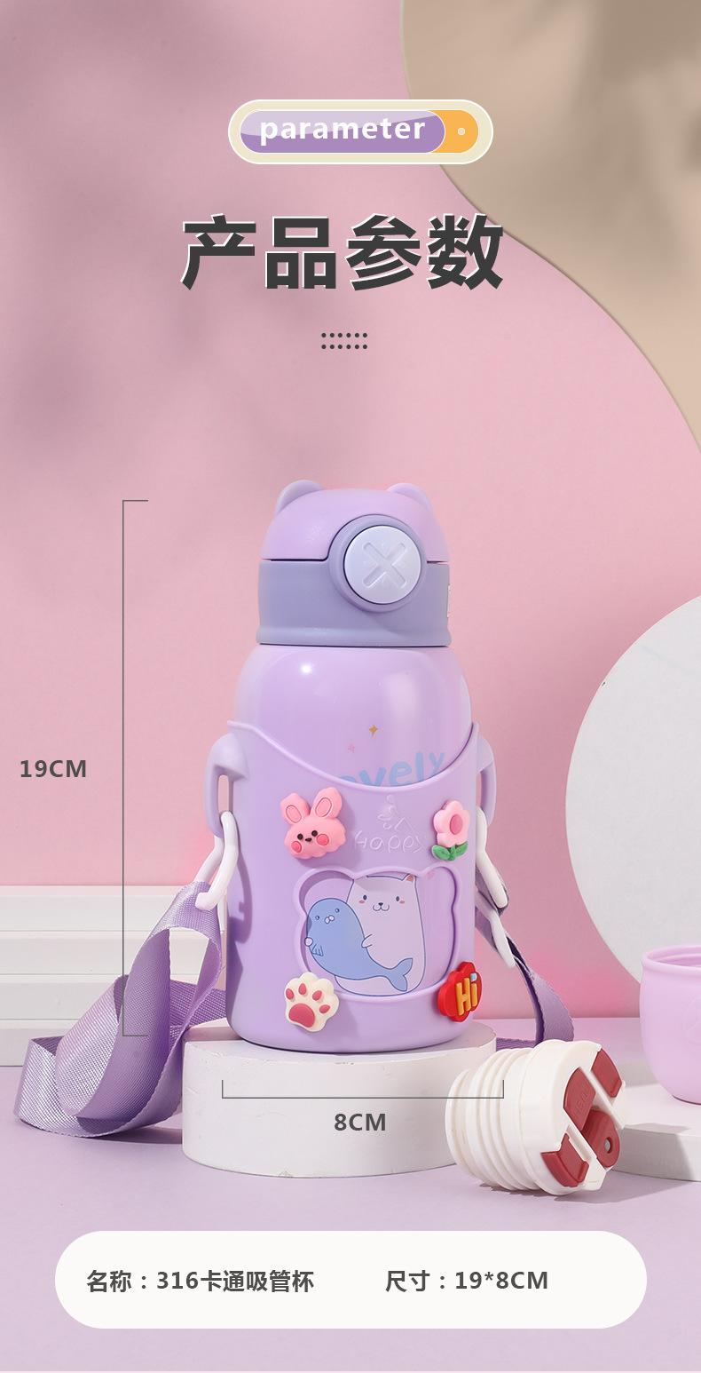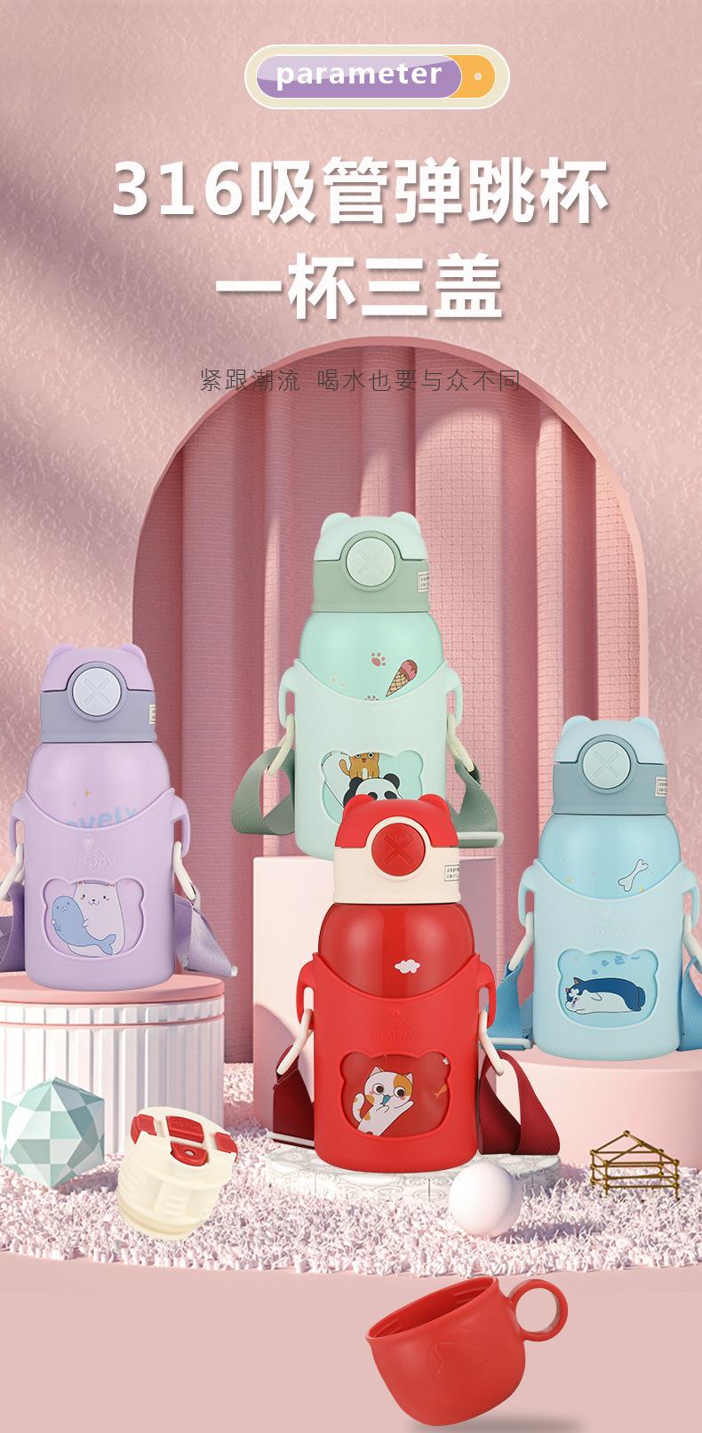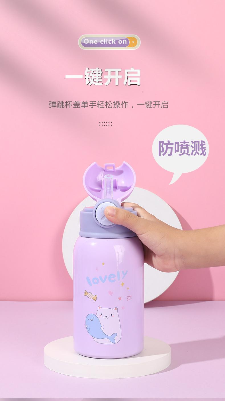 Vaso de Agua con Popote Acero Inoxidable 316 Vaso Termo Infantil de Dibujos Animados Portátil Rebotante para Exterior Taza Portátil Hervidor de Agua