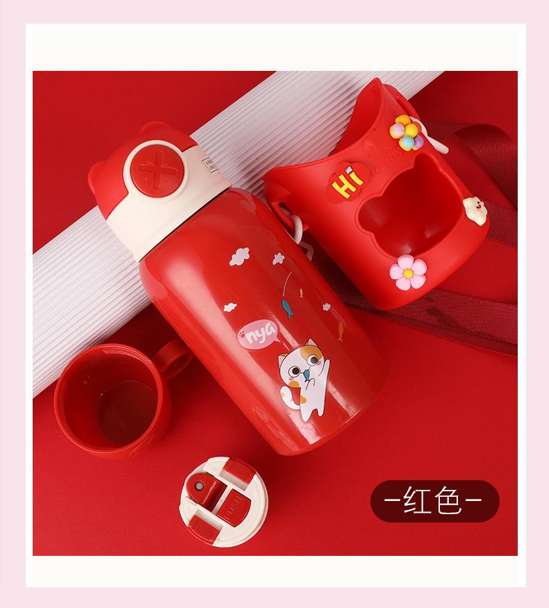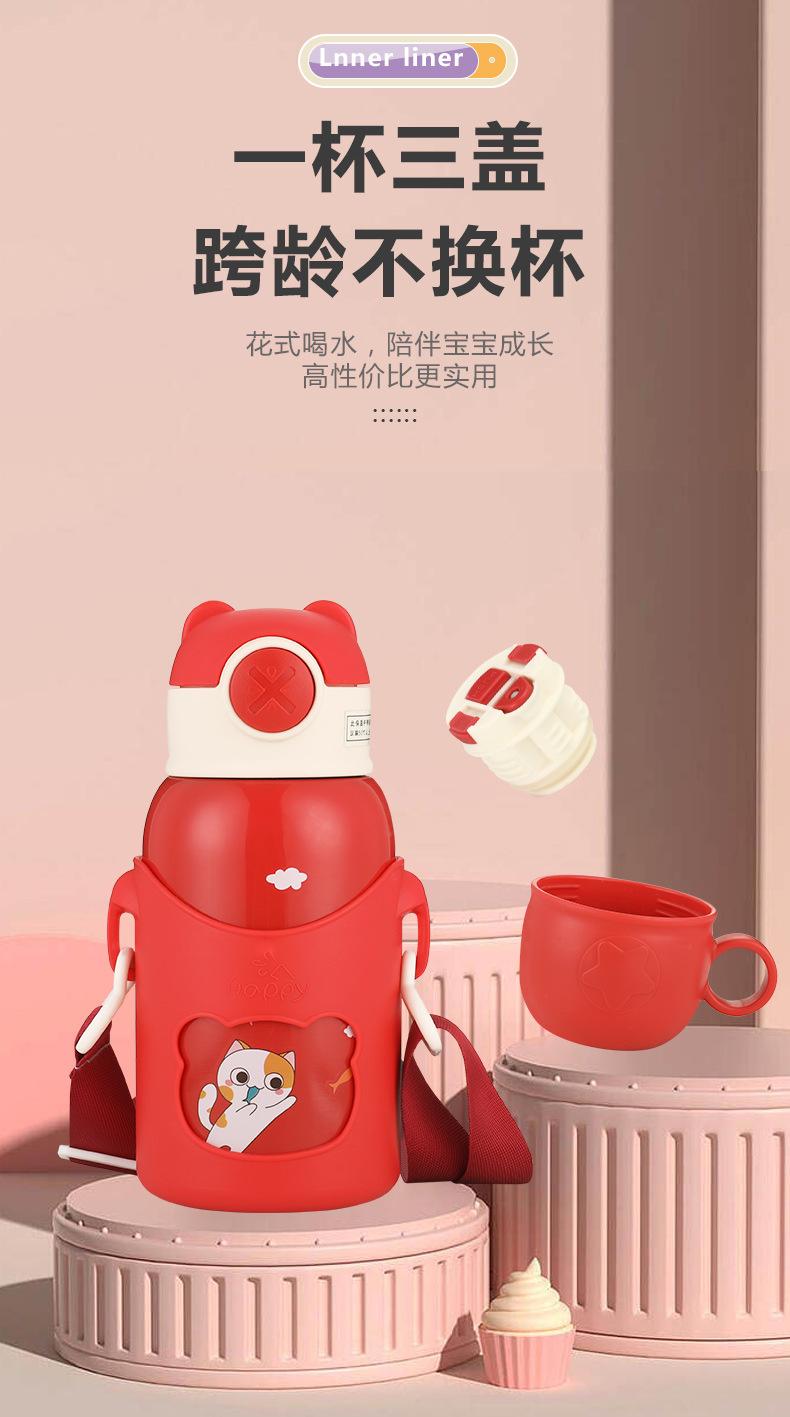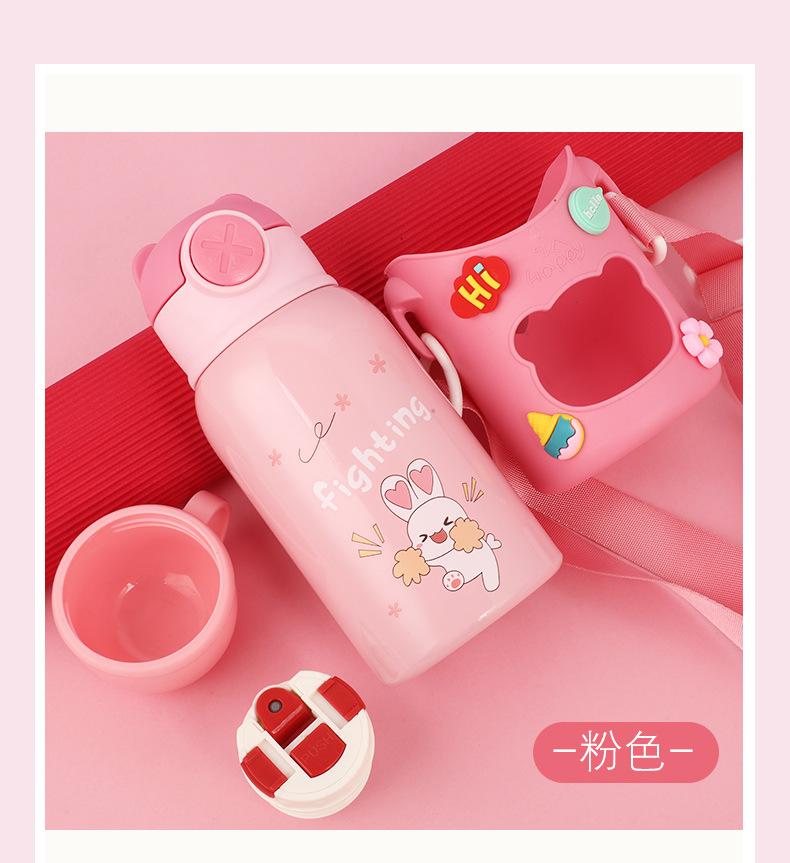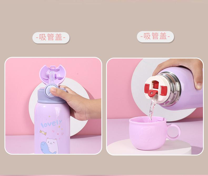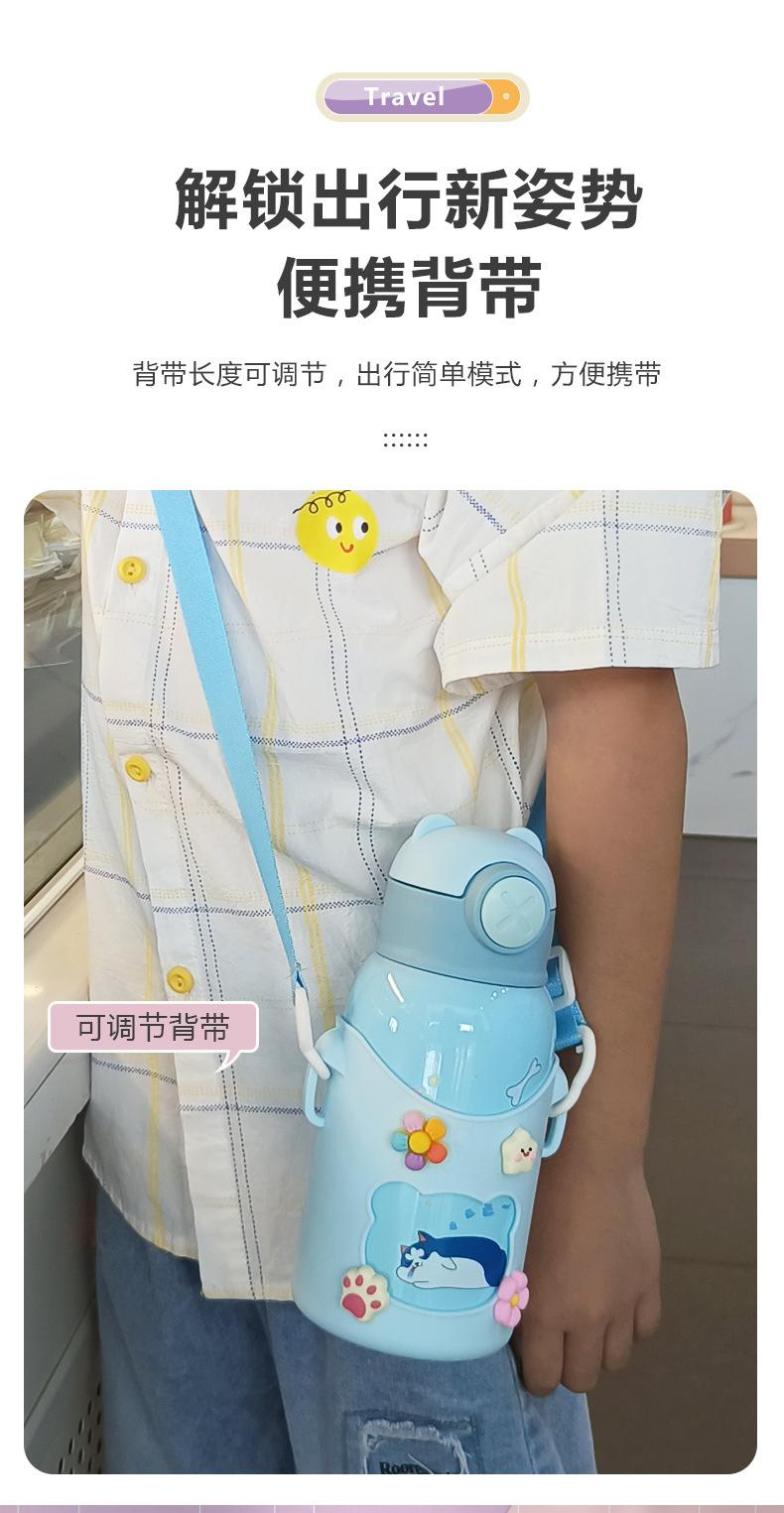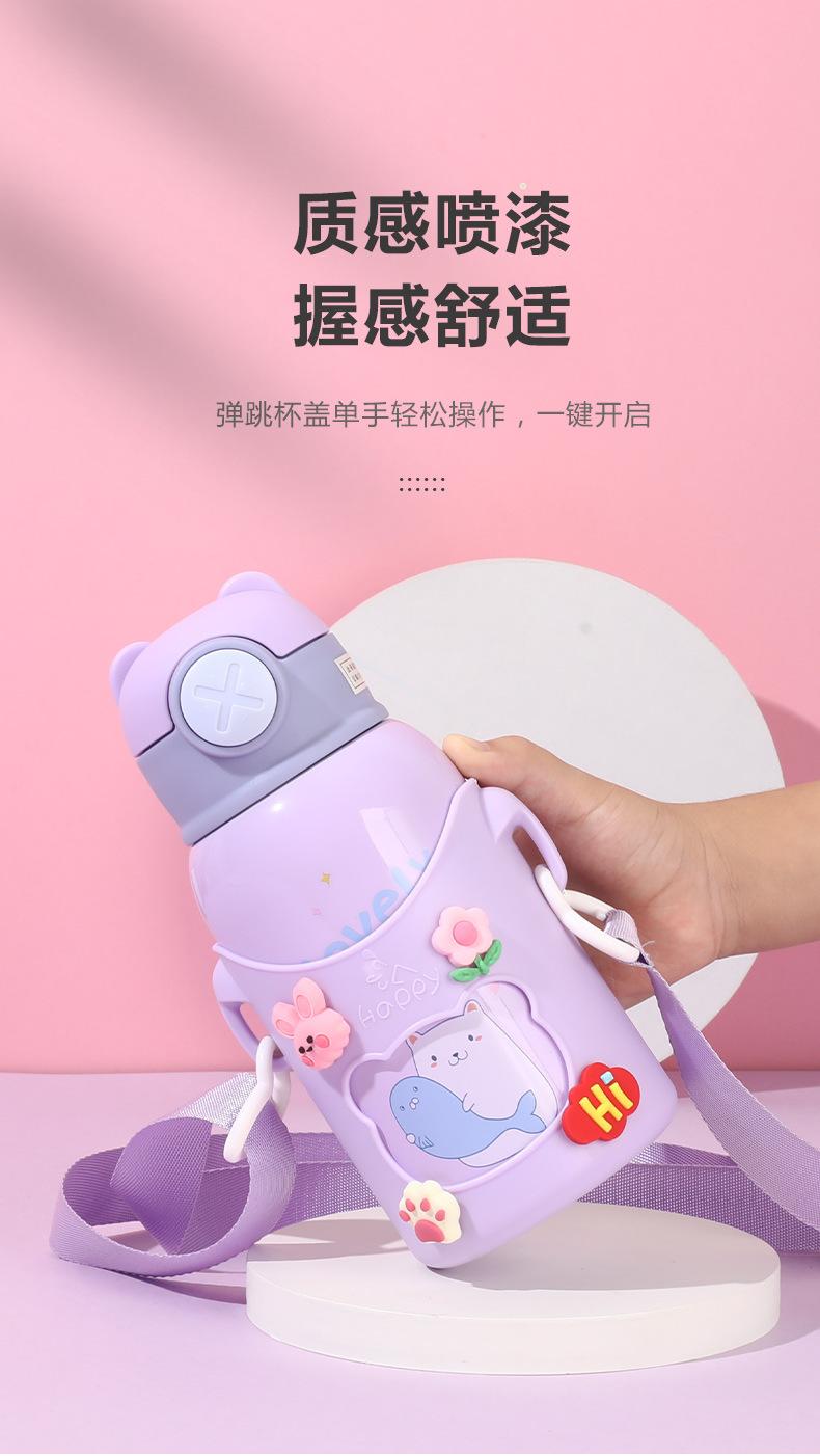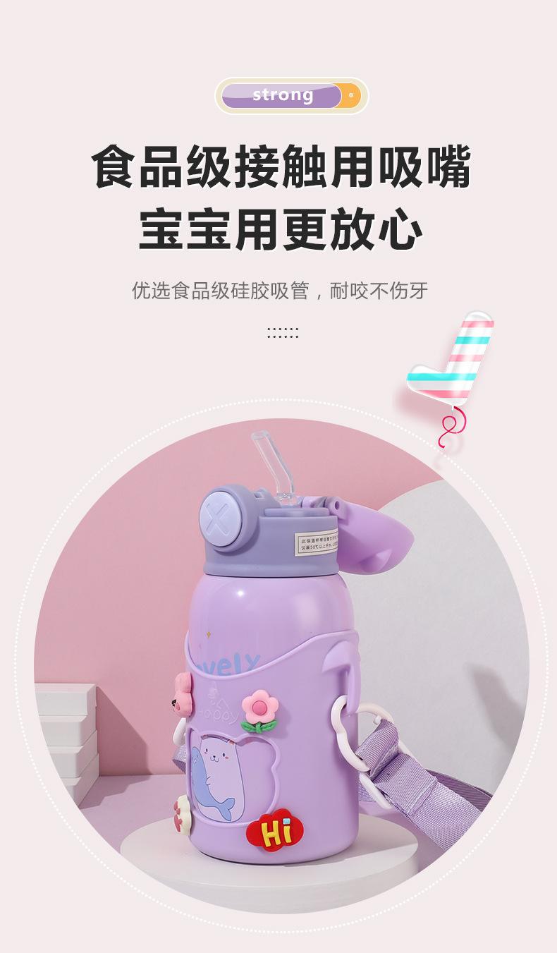 Vaso de Agua con Popote Acero Inoxidable 316 Vaso Termo Infantil de Dibujos Animados Portátil Rebotante para Exterior Taza Portátil Hervidor de Agua