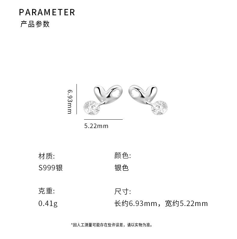 Aretes de Corazón de Circonita con Diseño Nicho de Plata Pura S999 para Mujer Aretes de Perforación de Oreja Estilo Ins de Alta Gama Dropshipping