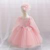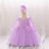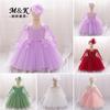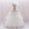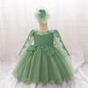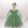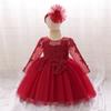 Vestido de princesa con bordado de encaje para niña de un año, vestido de malla de manga larga con banda para el pelo, novedad de 2024