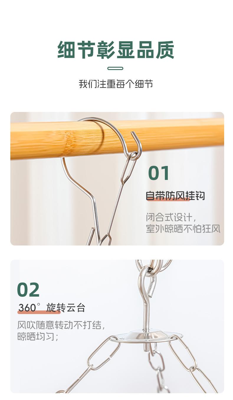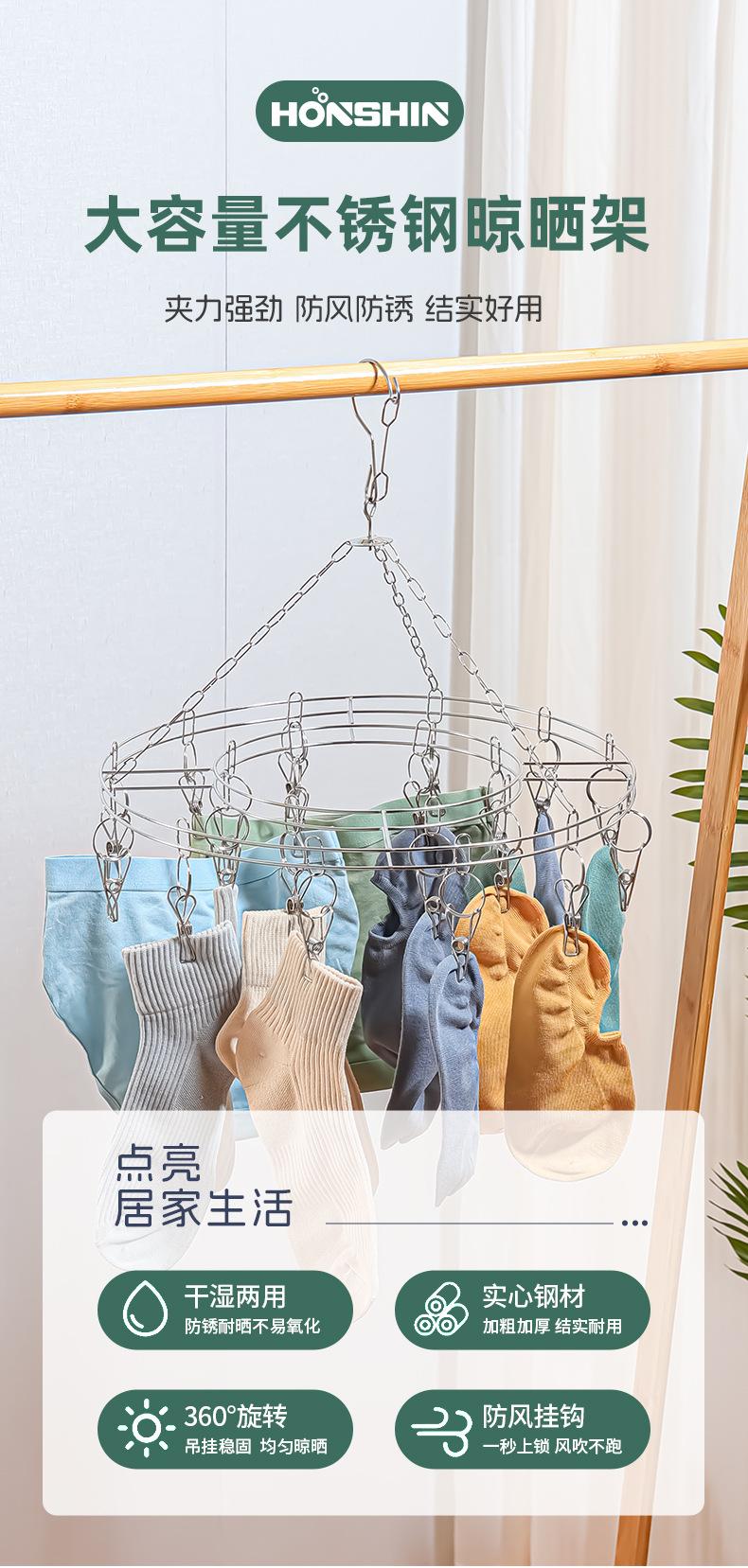 Gancho de Ropa de Acero Inoxidable Clip de Armario Redondo a Prueba de Viento Estante de Secado de Ropa Multiusos Secado Calcetines Toalla Venta al por Mayor Multifunción