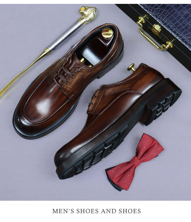 Zapatos de vestir de cuero para hombre, estilo británico, de cuero genuino, estilo casual de negocios, de piel de vaca, de alta gama, para boda, novio y talla grande.