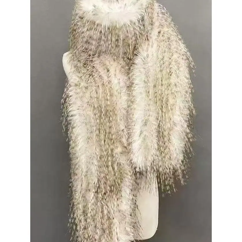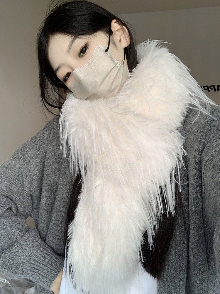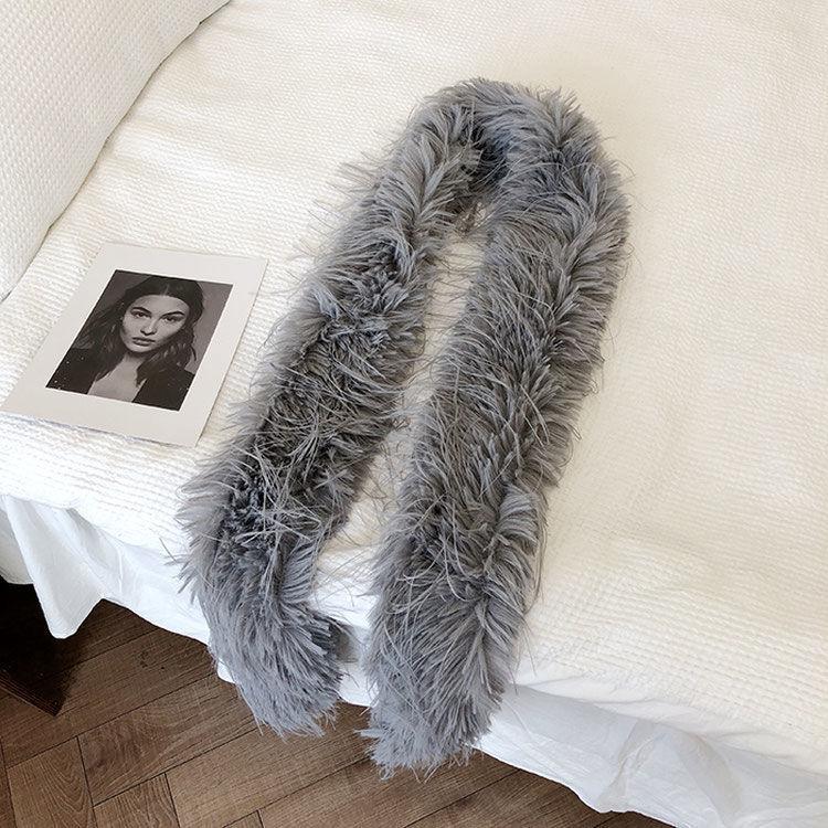 Bufanda súper larga estilo celebridad de Internet para mujer, cuello de piel de zorro de imitación de invierno, chal cálido, bufanda de cuello de felpa, cuello falso para mujer