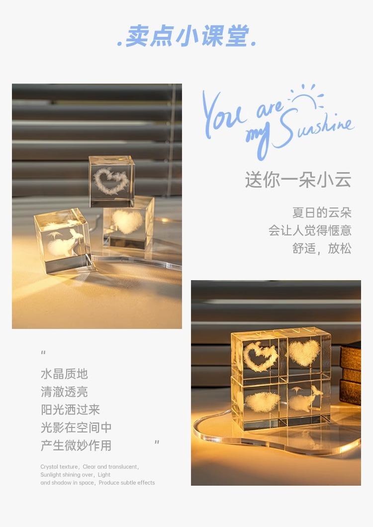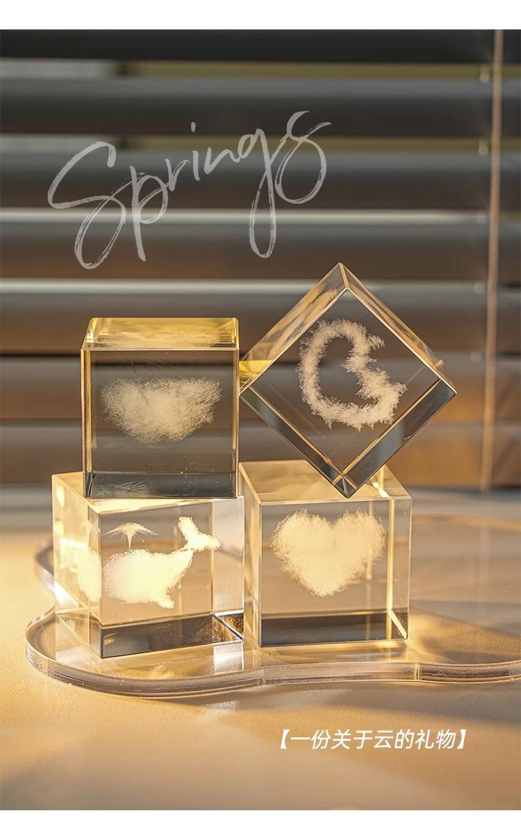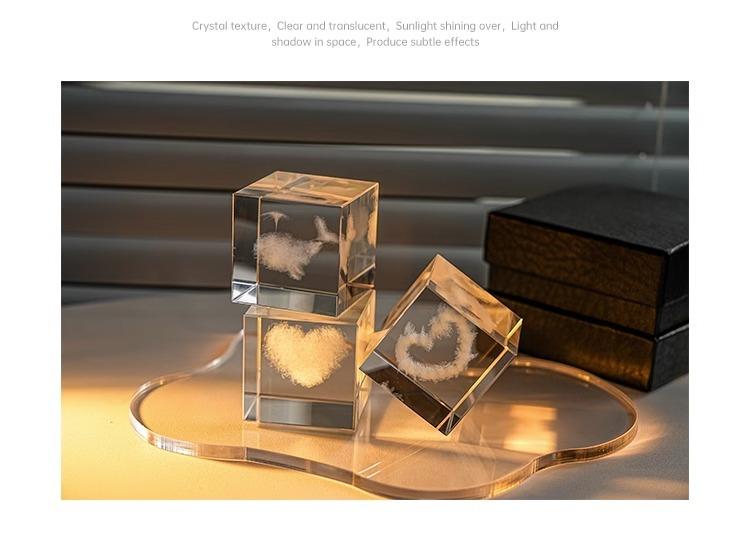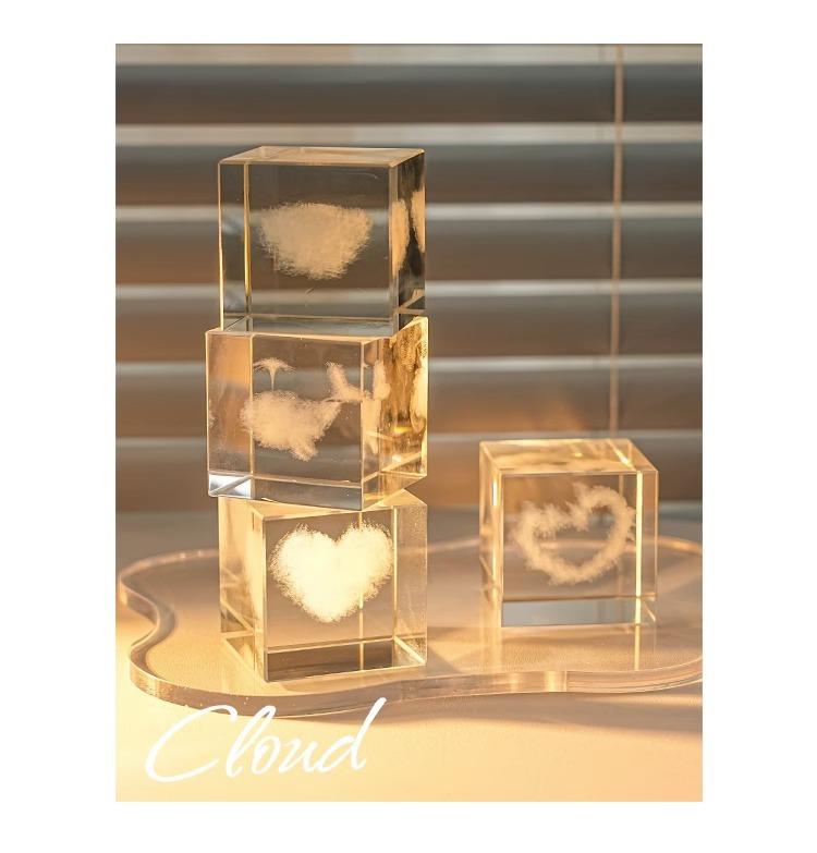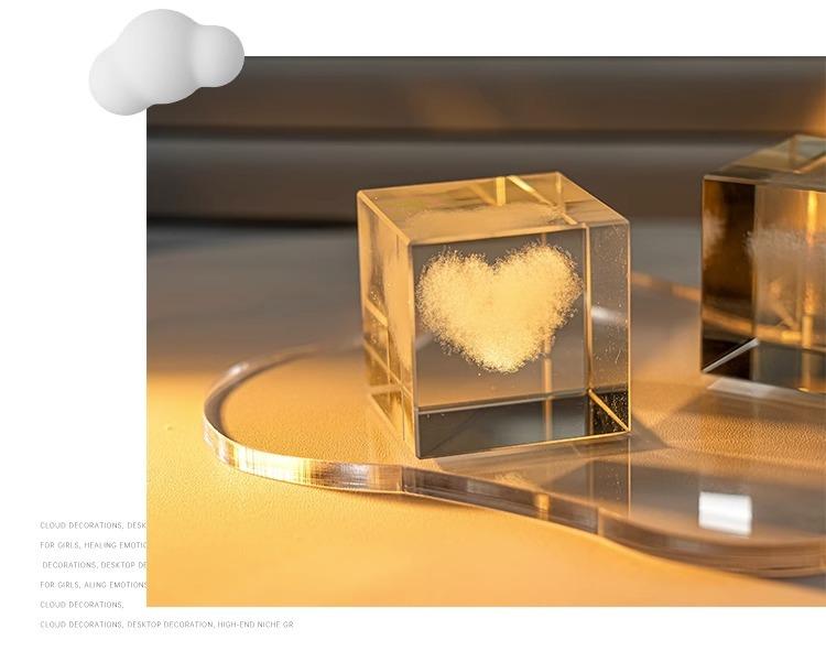 Nubes Lluvia Cubo Brillante Cristal Adornos de Escritorio Estación de Trabajo de Oficina Decoraciones de Dormitorio Luz Nocturna Regalo de Cumpleaños