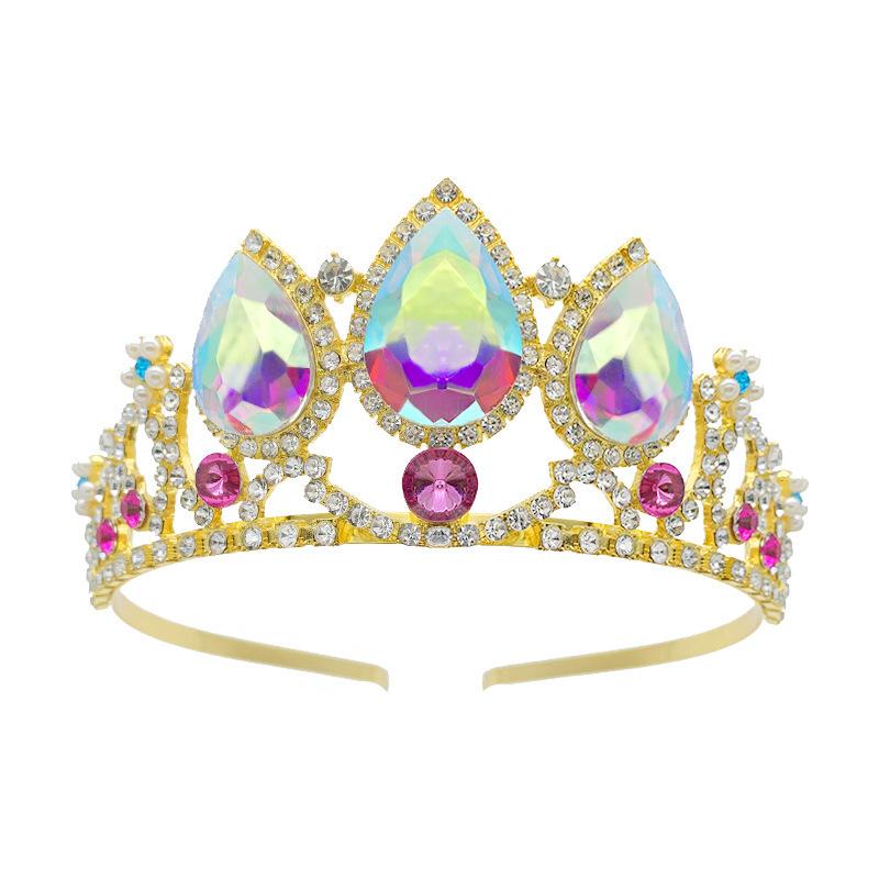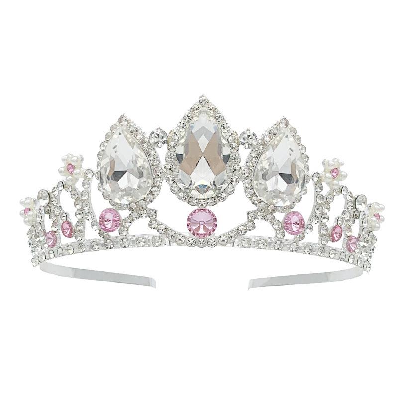 Diadema de corona de aleación para niños, diadema con diamantes de imitación, diadema de princesa para niñas, regalo de cumpleaños festivo, accesorios para el cabello al por mayor