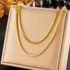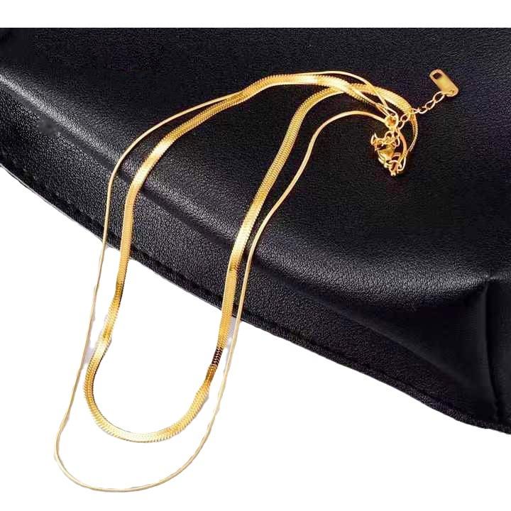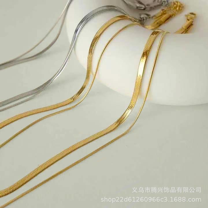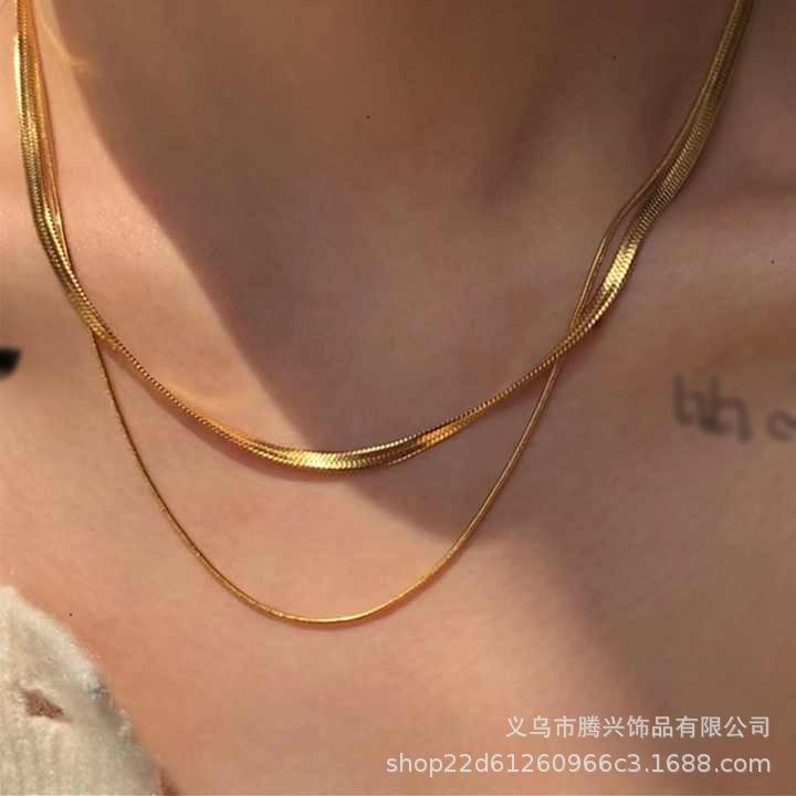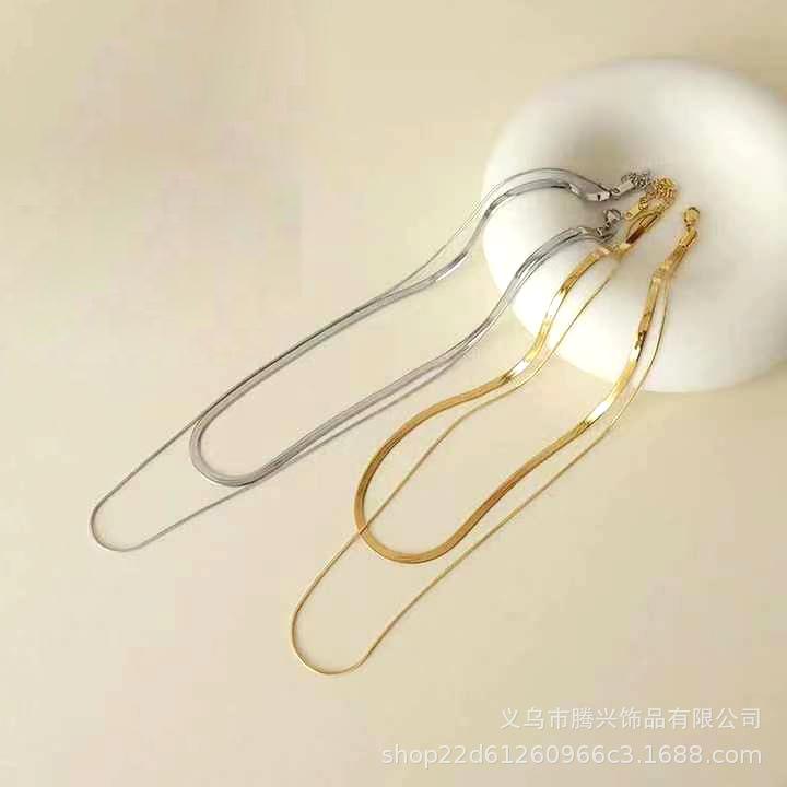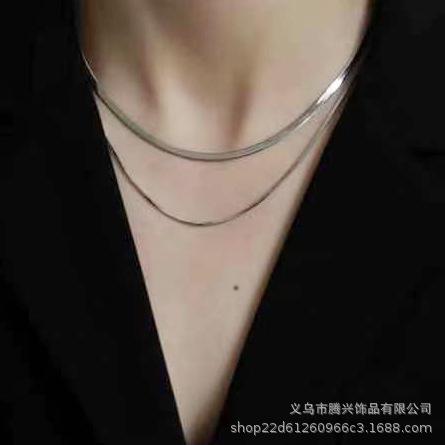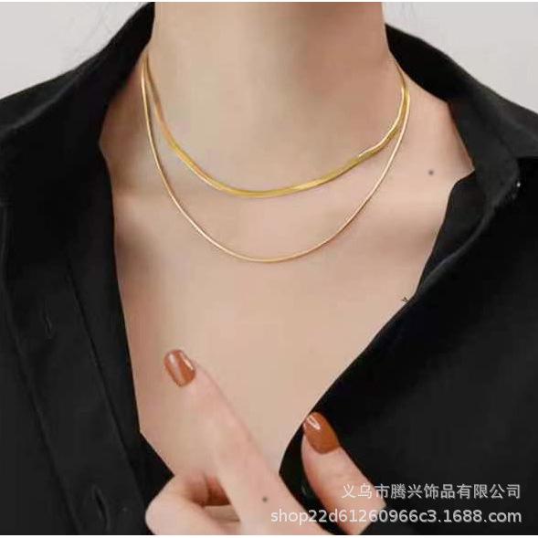 Collar de acero de titanio apilado de doble capa versátil para chica caliente personalizada europea y americana transfronteriza, cadena lisa para hombre y mujer, cadena de hueso de serpiente, cadena de hoja para clavícula