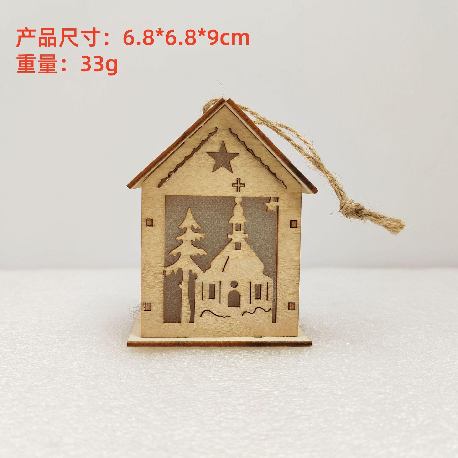 Decoraciones Navideñas de Madera Transfronterizas Adornos de Cabaña Casa de Navidad Artesanía Hecha a Mano Venta al por Mayor Hecho a Mano