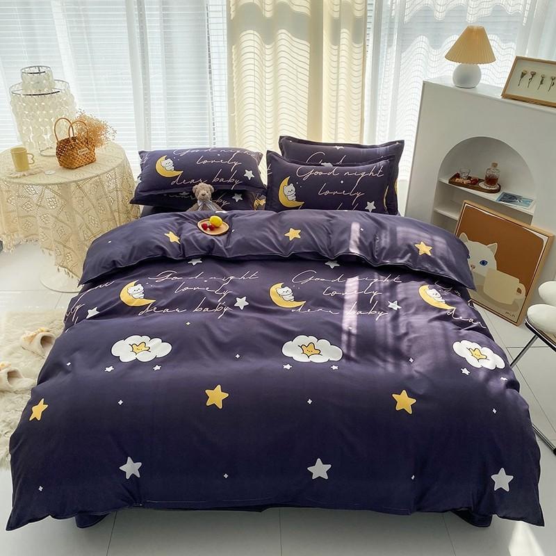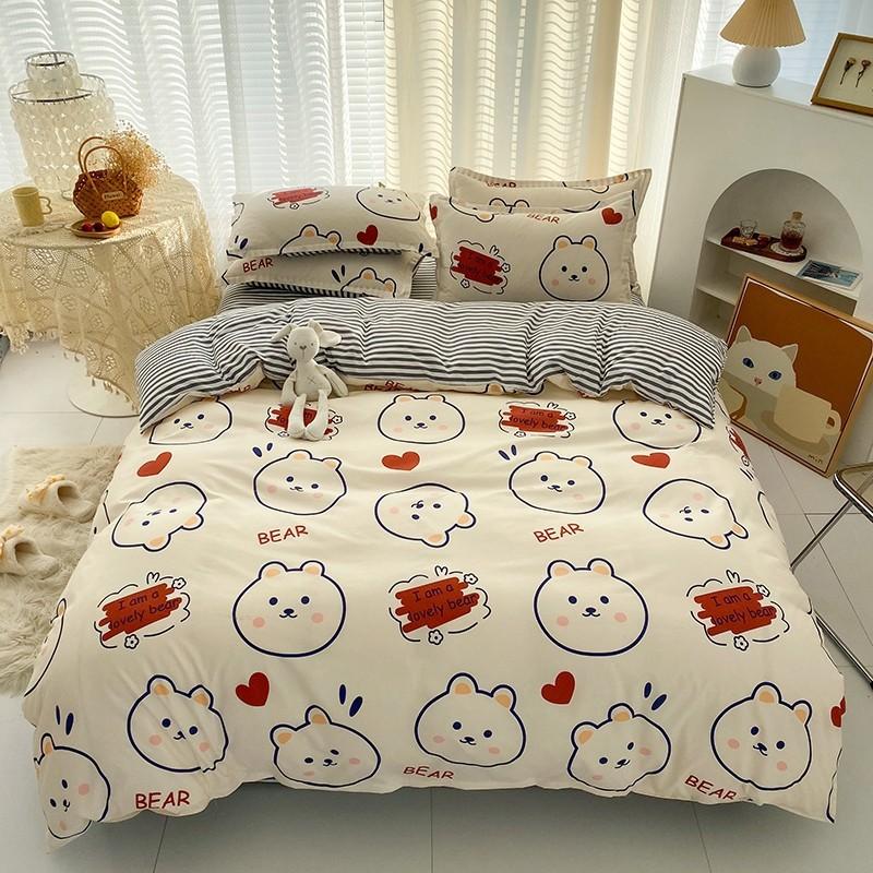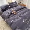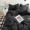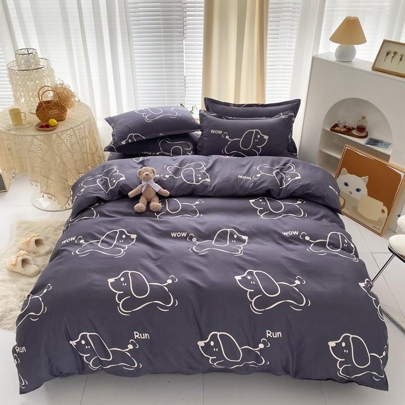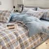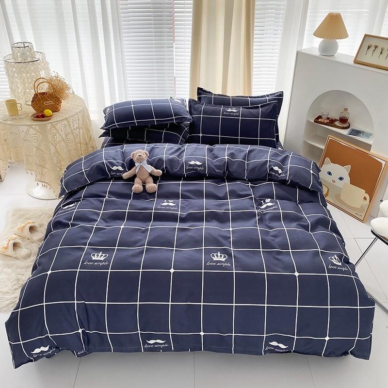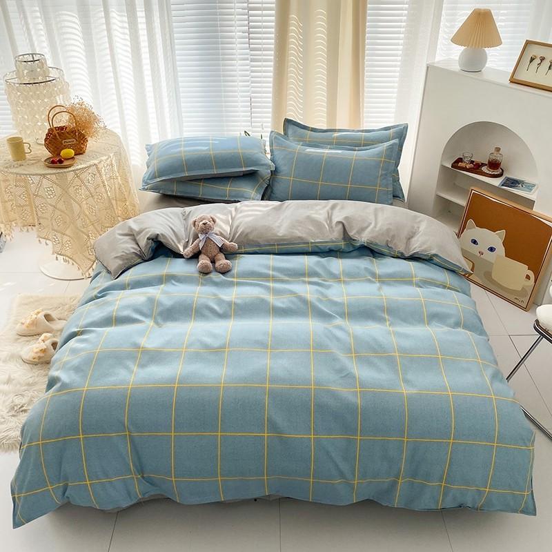 Nuevo conjunto de cuatro piezas de algodón lavado con lijado y agradable para la piel, kit simple de primavera y verano, sábana y funda de edredón para estudiantes, venta al por mayor