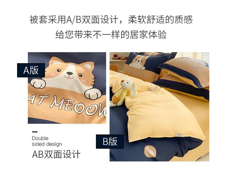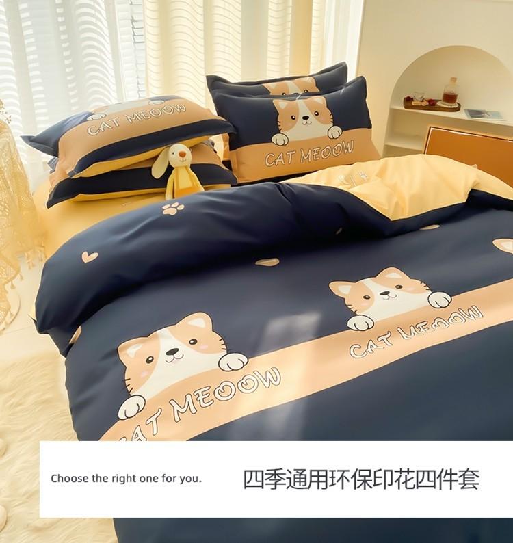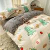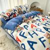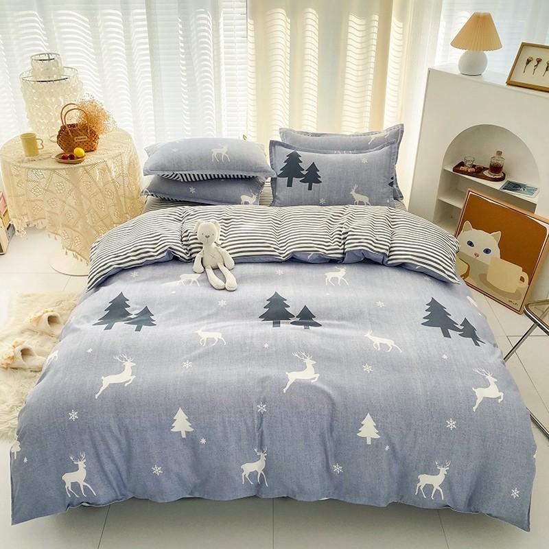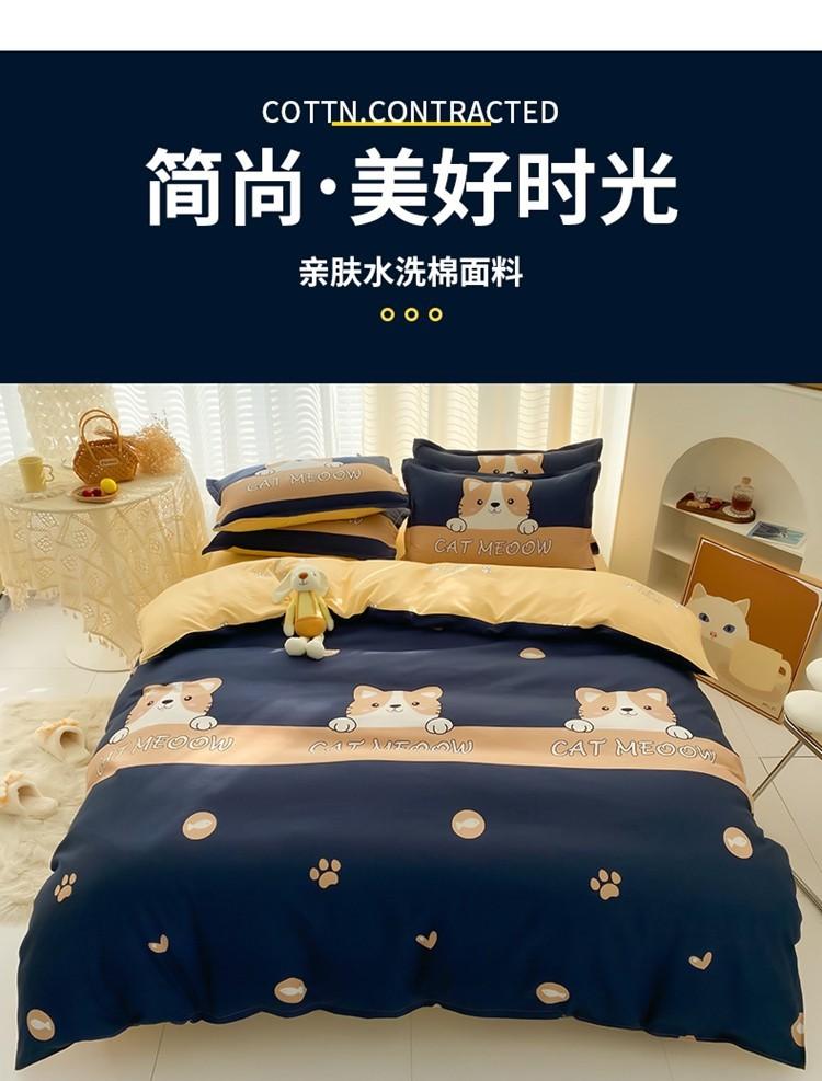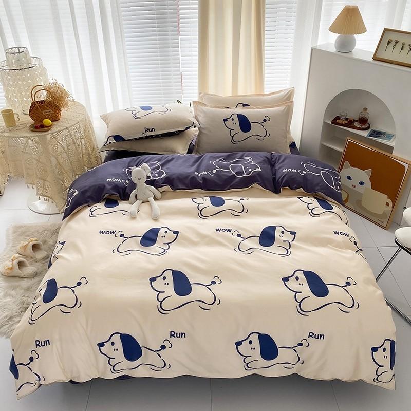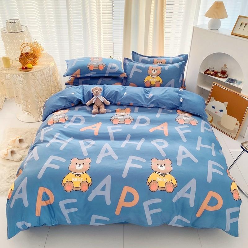 Nuevo conjunto de cuatro piezas de algodón lavado con lijado y agradable para la piel, kit simple de primavera y verano, sábana y funda de edredón para estudiantes, venta al por mayor