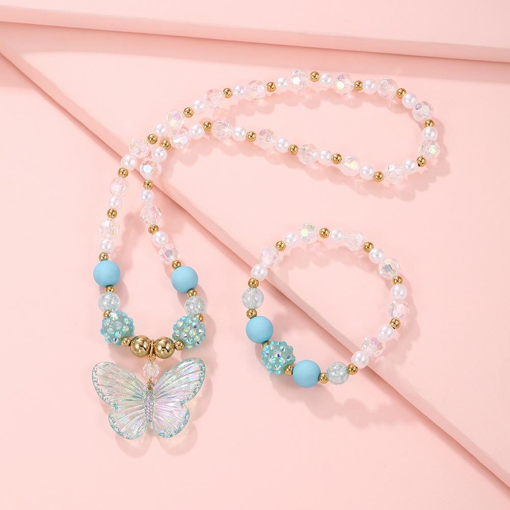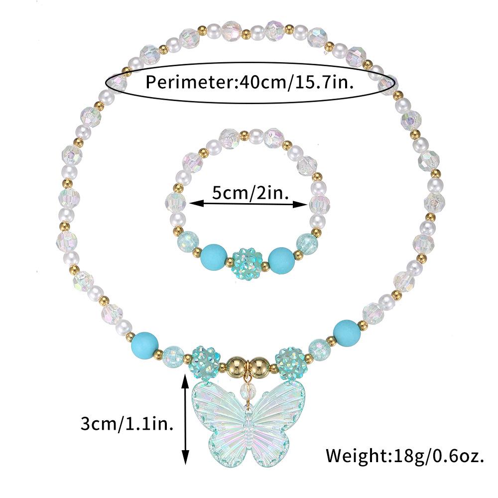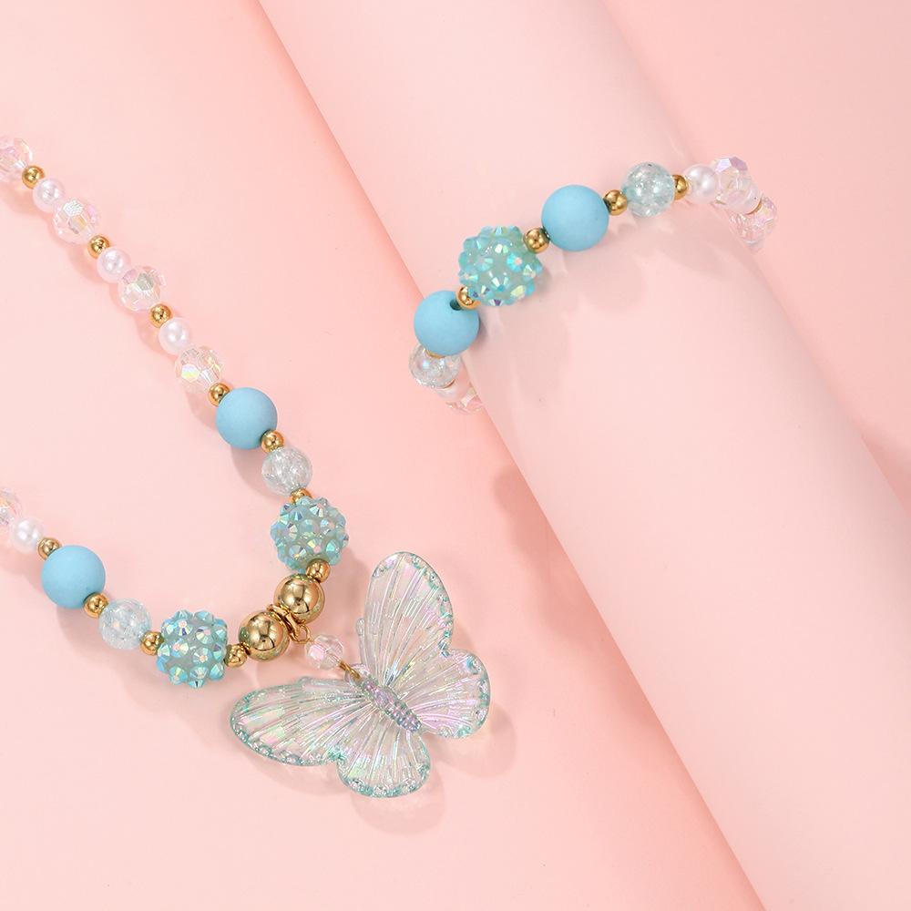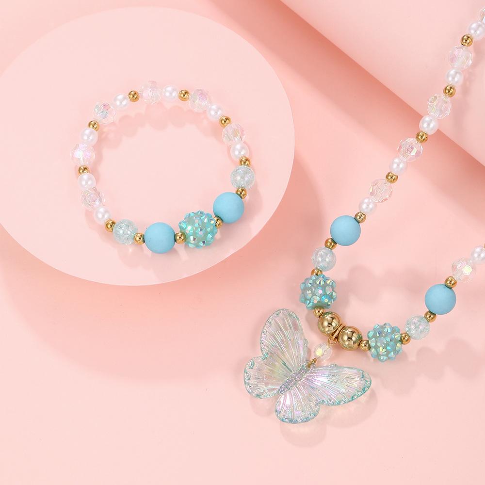 Nuevos Productos Transfronterizos Collar de Clavícula para Niña Joyería de Princesa Cristal de Color Perla Mariposa Collar para Niños Juego de Pulsera