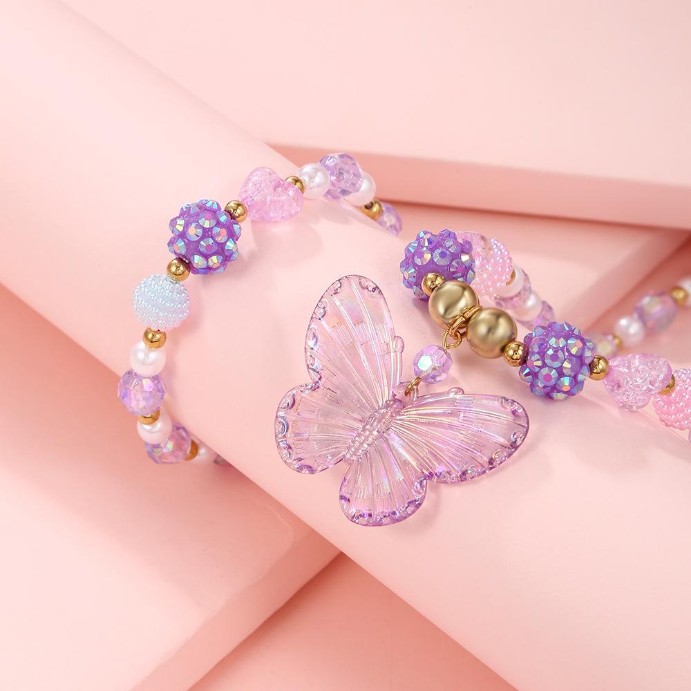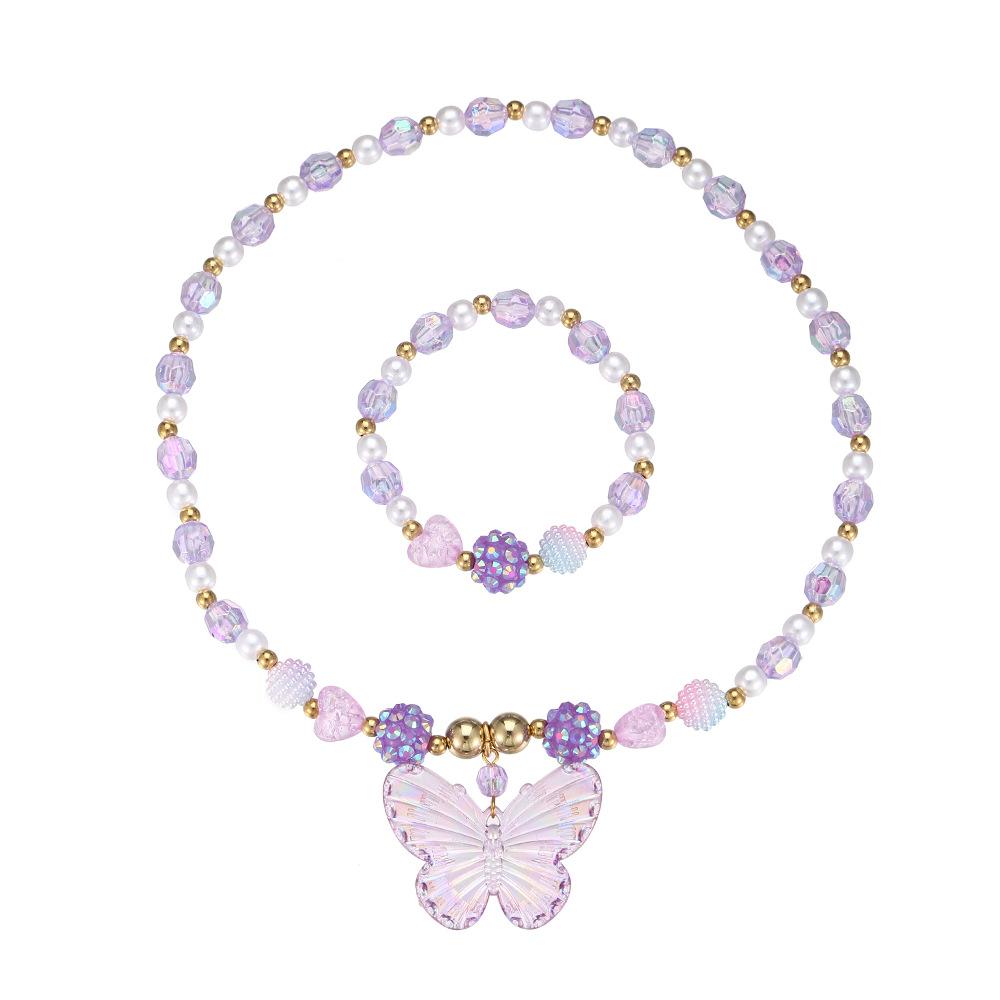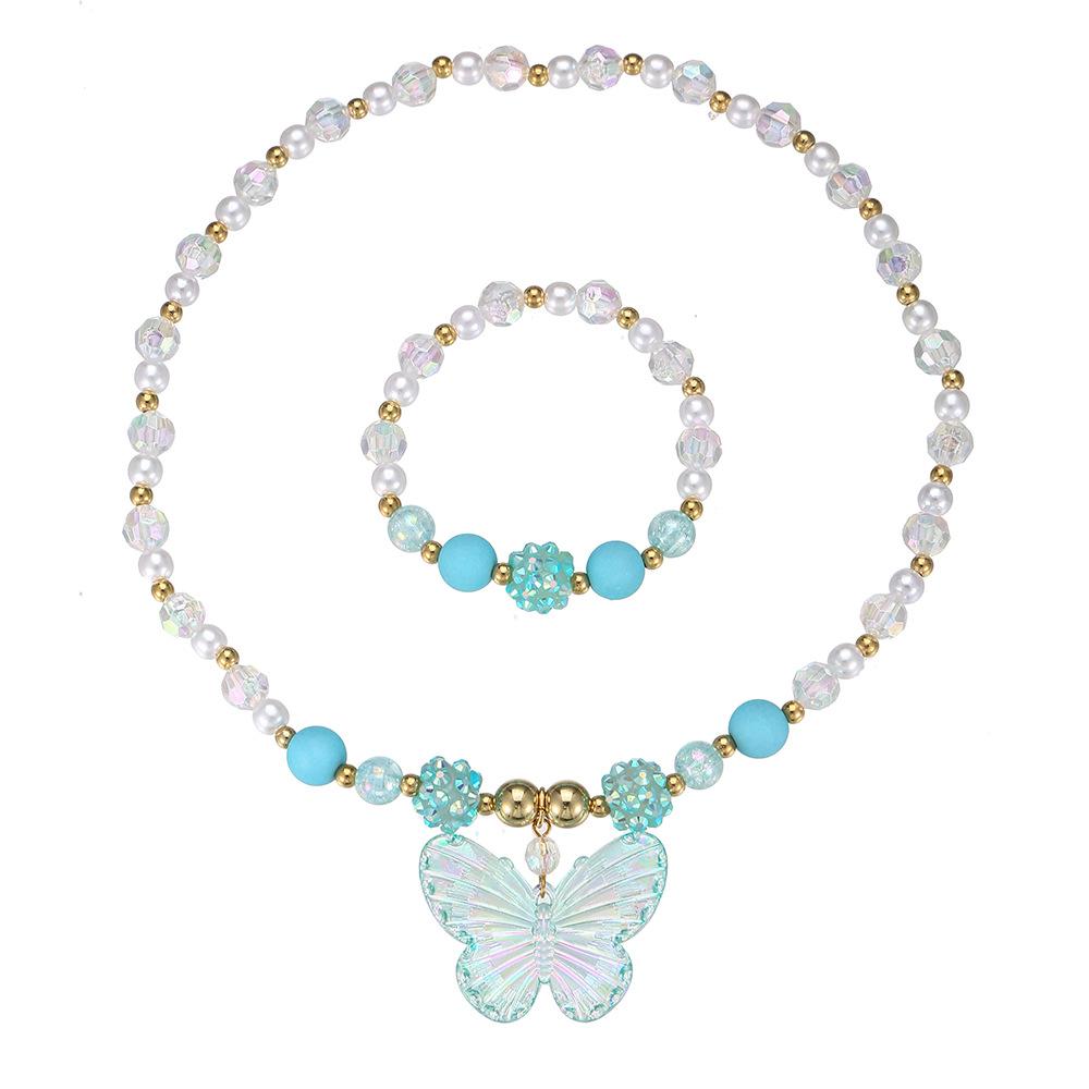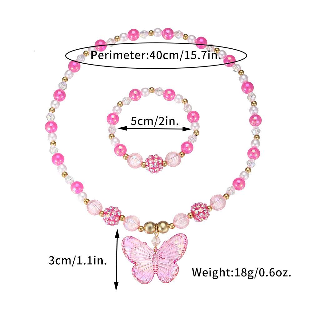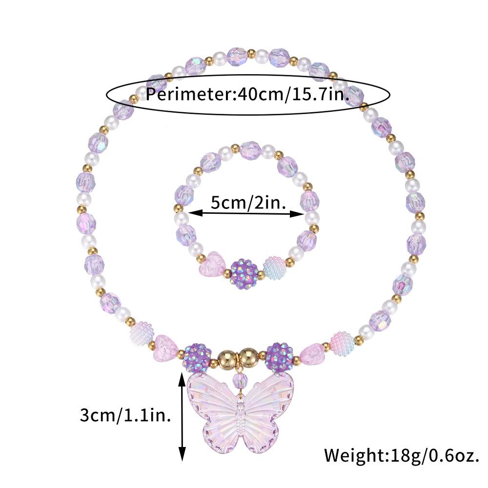 Nuevos Productos Transfronterizos Collar de Clavícula para Niña Joyería de Princesa Cristal de Color Perla Mariposa Collar para Niños Juego de Pulsera