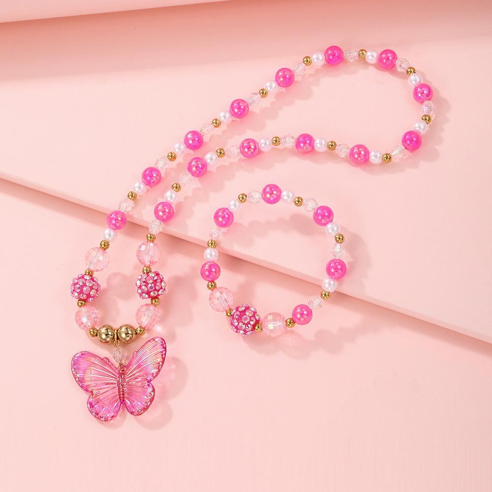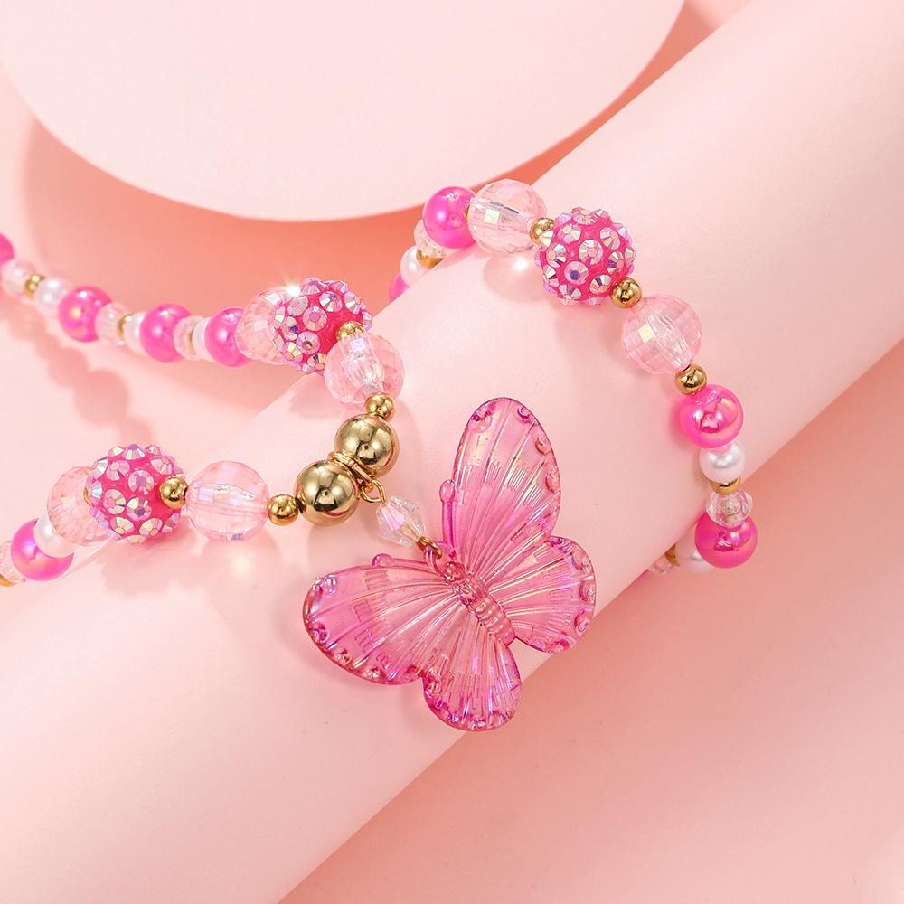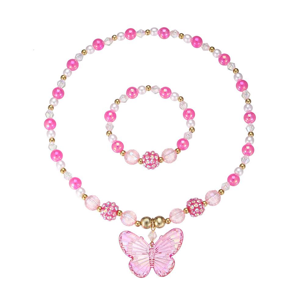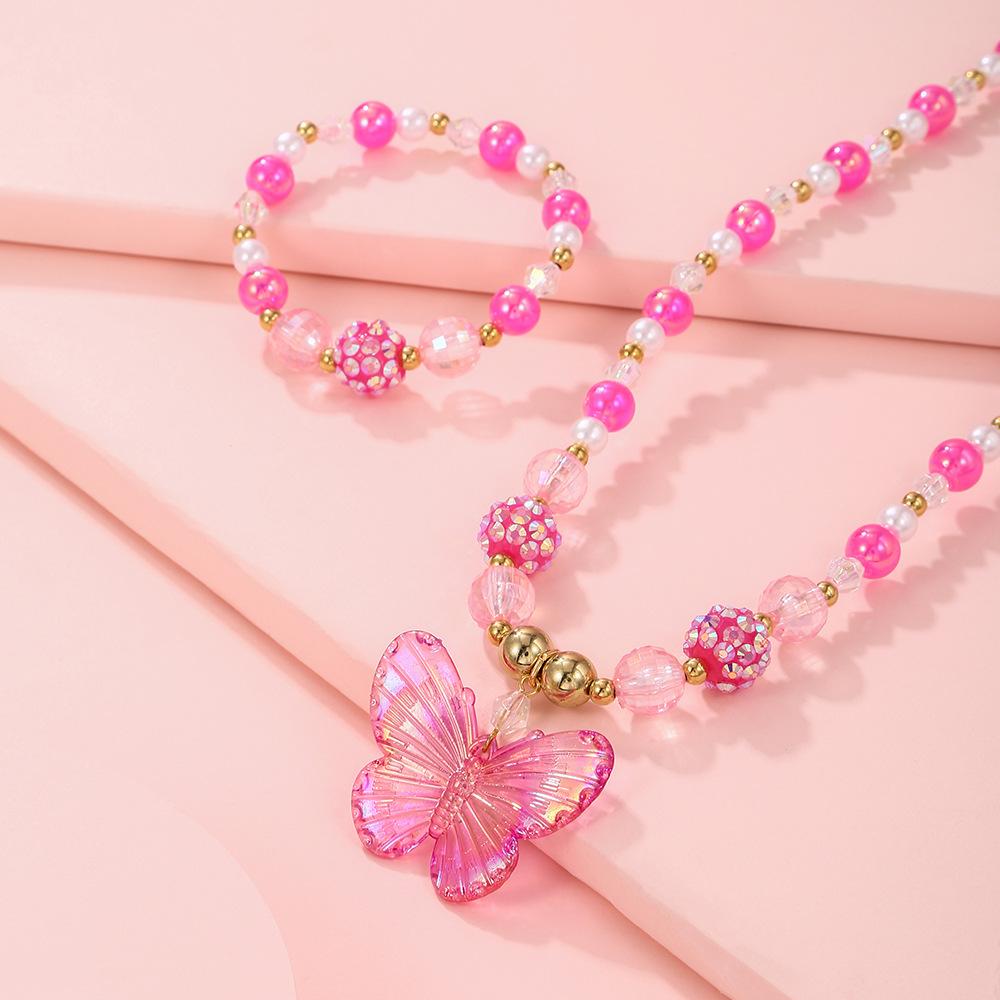 Nuevos Productos Transfronterizos Collar de Clavícula para Niña Joyería de Princesa Cristal de Color Perla Mariposa Collar para Niños Juego de Pulsera