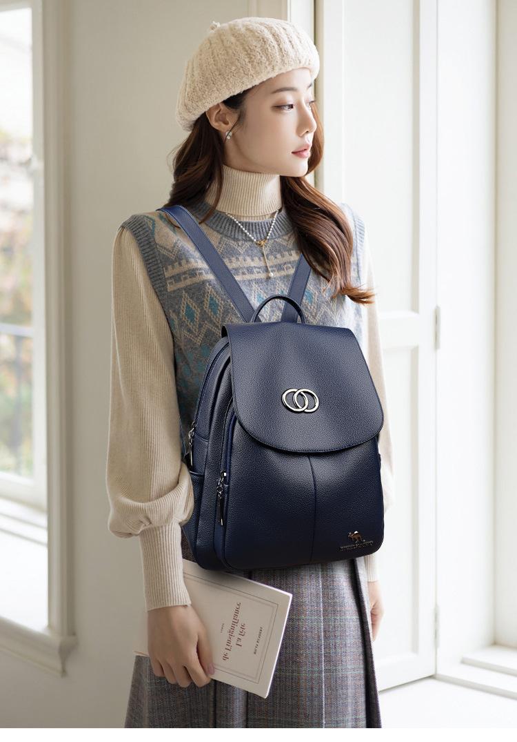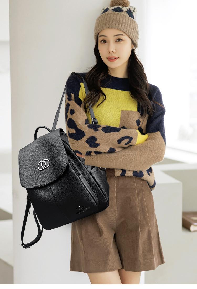 Mochila Transfronteriza para Mujer 2024 Nueva PU Moda Europea y Americana Portátil para Desplazamiento Sencilla Lichi Mochila de Cuero Suave