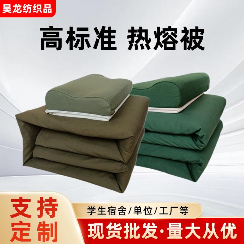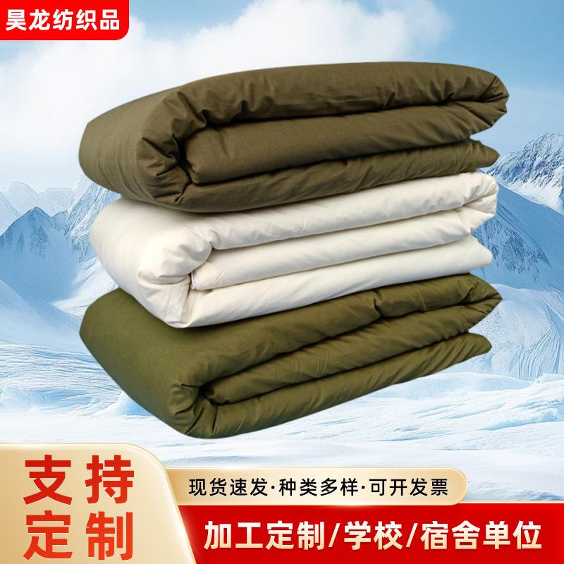 | Suministro de edredón de fusión en caliente verde militar para estudiantes, unidad de edredón de entrenamiento militar para el hogar, edredón de dormitorio, núcleo de edredón de algodón a prueba de humedad |