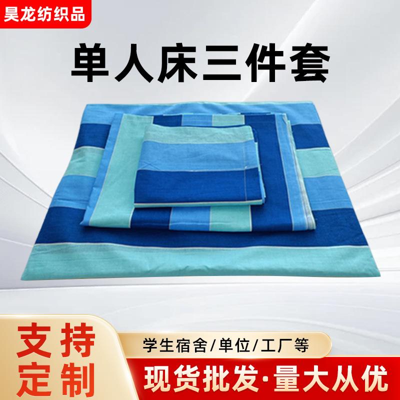 | Conjunto de tres piezas para dormitorio de estudiantes, sábana a cuadros sencilla, funda de edredón y funda de almohada, ropa de cama individual para la escuela, fabricante al por mayor |