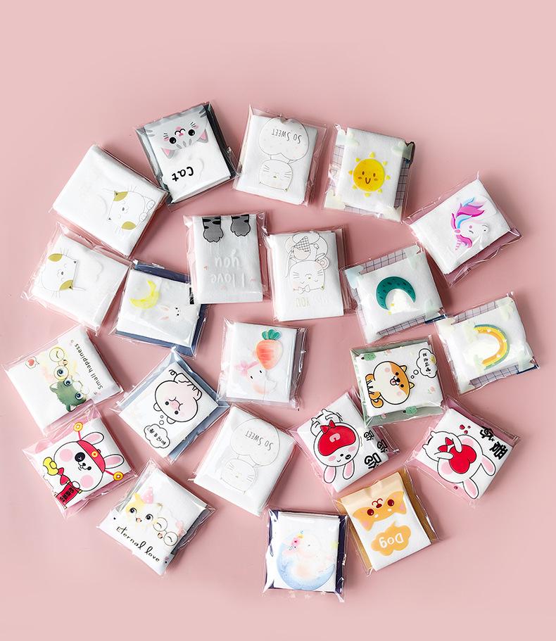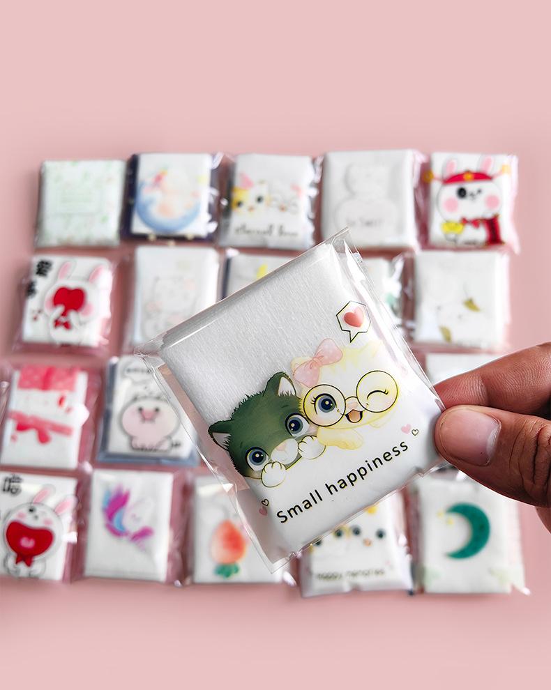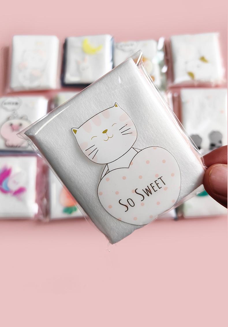 25 piezas algodón cosmético bolsa pequeña pieza de algodón delgada bolsa de dibujos animados linda algodón desmaquillante compresa húmeda algodón para spa tejido lote de fábrica