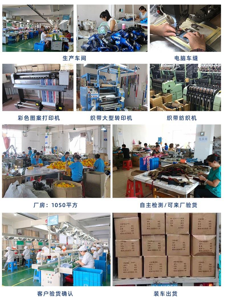 - Guangzhou Chente Webbing Products Co., Ltd. es un fabricante profesional y moderno que integra diseño, producción y ventas. Se especializa en la producción y venta de correas para equipaje, cordones, muñequeras, correas para equipaje, cadenas para chupetes, correas para hombros, correas para cámaras, correas para mascotas, correas para gafas, correas para botellas de agua, correas para equipos deportivos, cordones de neopreno, cinchas y cinchas terminadas y semiterminadas. La fábrica cuenta con un sistema de gestión de calidad completo, científico y moderno. La producción mensual alcanza las 500.000 cinchas, 150.000 correas para equipaje y 500.000 metros de cinchas. Los productos se exportan a más de 80 países y regiones de China continental e internacionalmente. El precio y el plazo de entrega han sido elogiados unánimemente por nuestros clientes. Chente da una cálida bienvenida a sus amigos, tanto nacionales como extranjeros, a visitar nuestra empresa para inspección, orientación y cooperación.