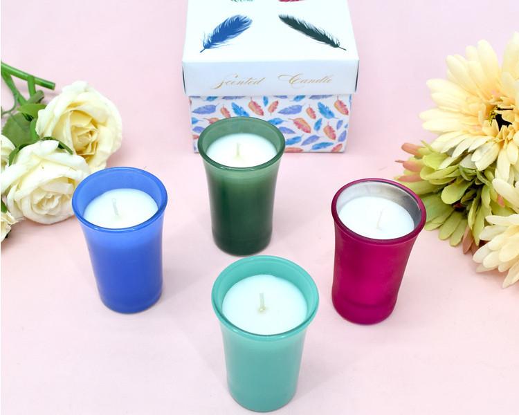 Venta al por Mayor de Fábrica Traje de Copa Personalizado de 4 Colores Vela de Aromaterapia de Cera de Soja Vegetal Pura Vela Perfumada en Nombre de la Planta