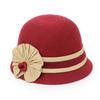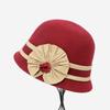 Sombrero de Mujer Otoño e Invierno Lana Retro Flor Grande Casual Británico Domo Sombrero Exterior Europeo y Americano Borgoña
