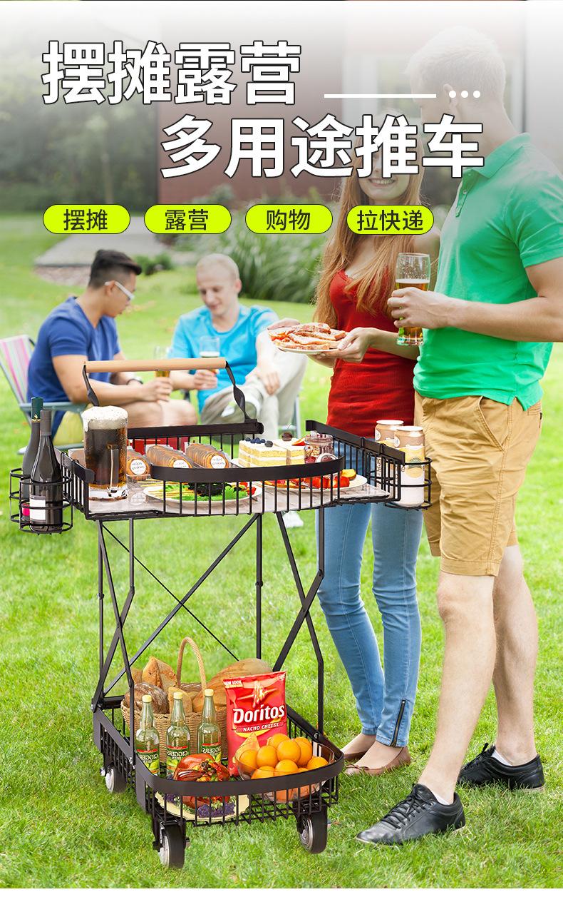 Barbacoa de camping al aire libre picnic coche móvil portátil plegable carrito tour autónomo puesto mercado nocturno carro de arrastre coche de refrigerio de medianoche