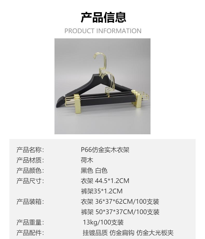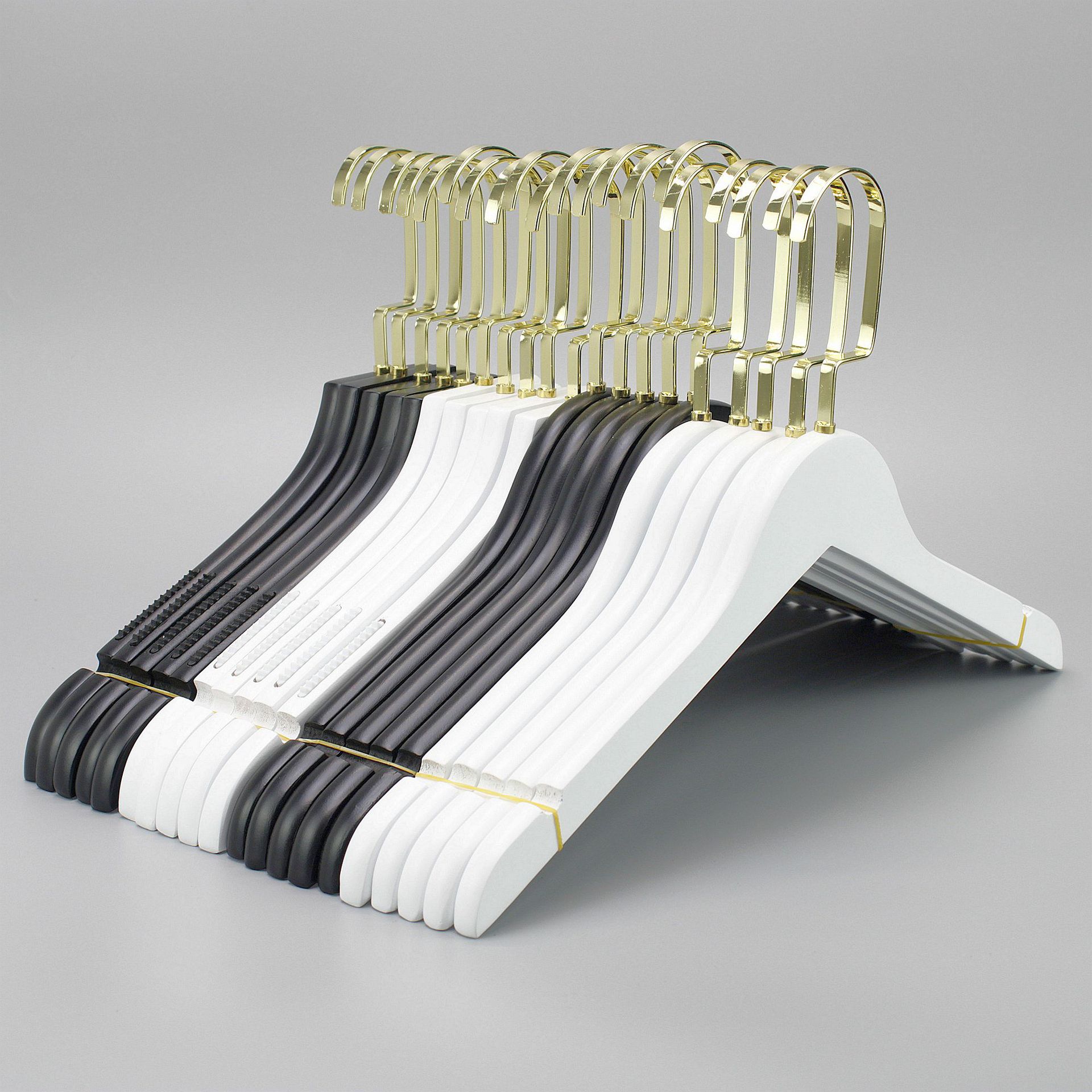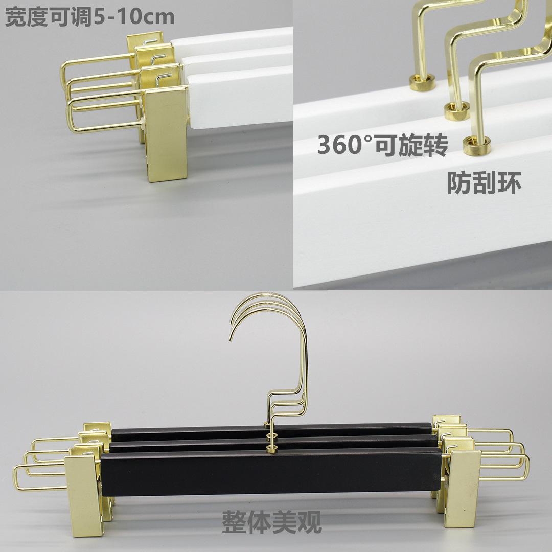 Percha de madera maciza en blanco y negro con imitación de oro transfronterizo para tienda de ropa, hogar, hotel, perchero de madera para pantalones, almacenamiento sin costuras, soporte para ropa