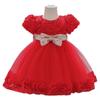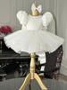 Vestido de niña estilo palacio de nuevo estilo, vestido de princesa con mangas abullonadas y lazo para bebé europeo y americano, disfraz de actuación para bebé de un año