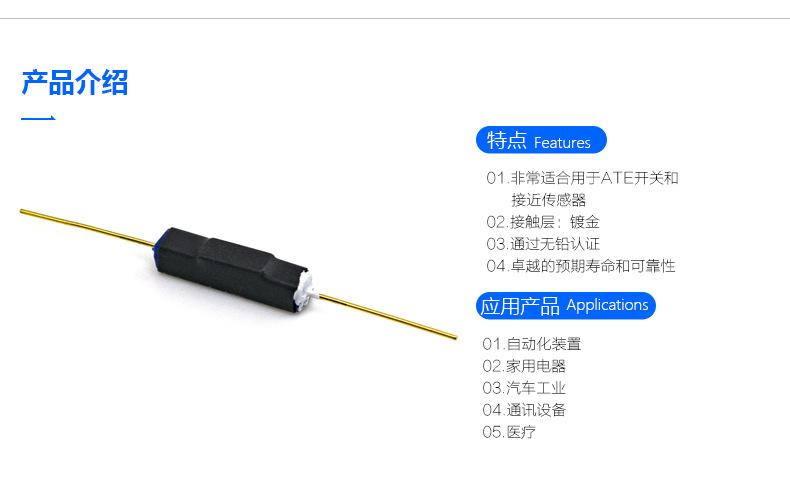 El interruptor de láminas miniatura de un solo polo y un solo tiro (SPST) es un interruptor de láminas miniatura de un solo polo y un solo tiro (SPST).BL-JSFGHG-14B Interruptor de láminas encapsulado en plástico Interruptor de láminas miniatura