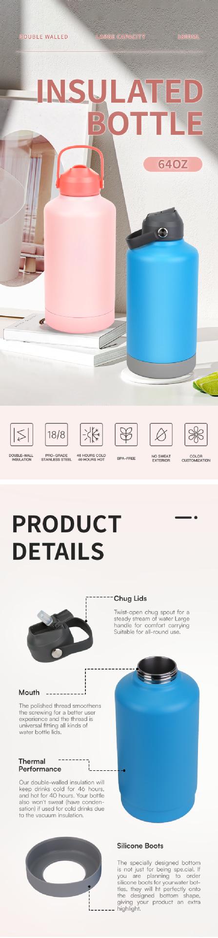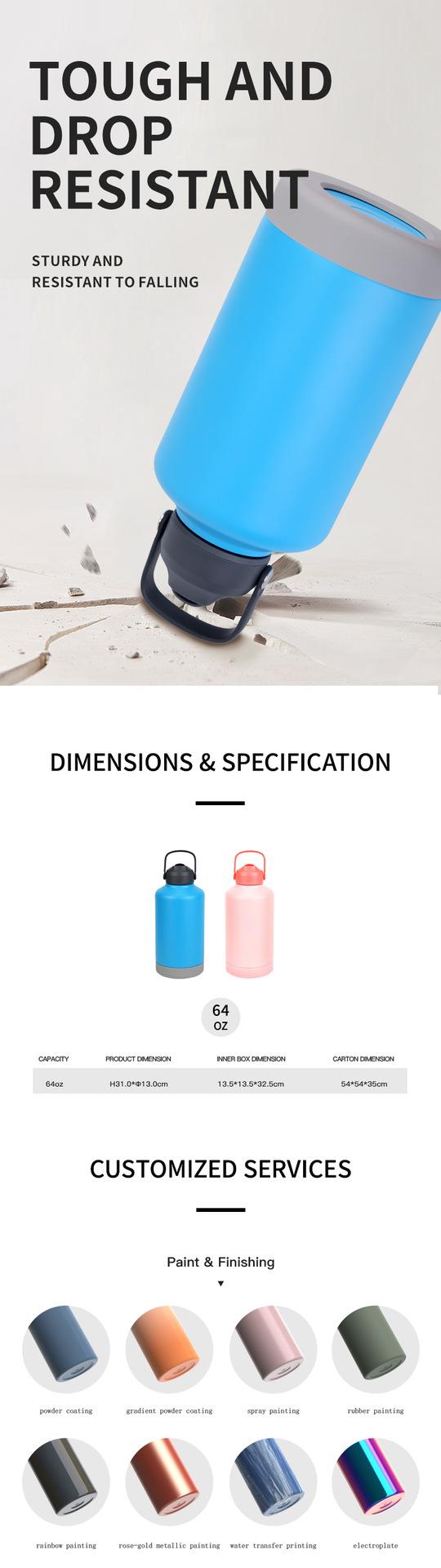 Termo de acero inoxidable 304 personalizado con tapa transfronteriza, 64 oz, gran capacidad, para deportes, venta al por mayor