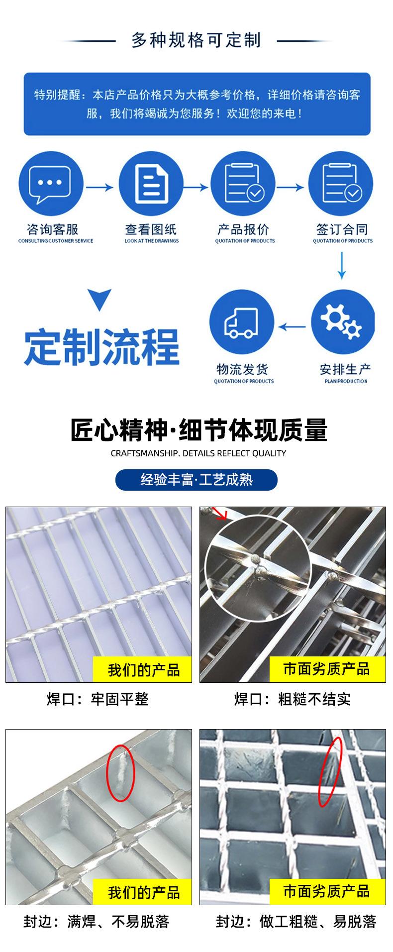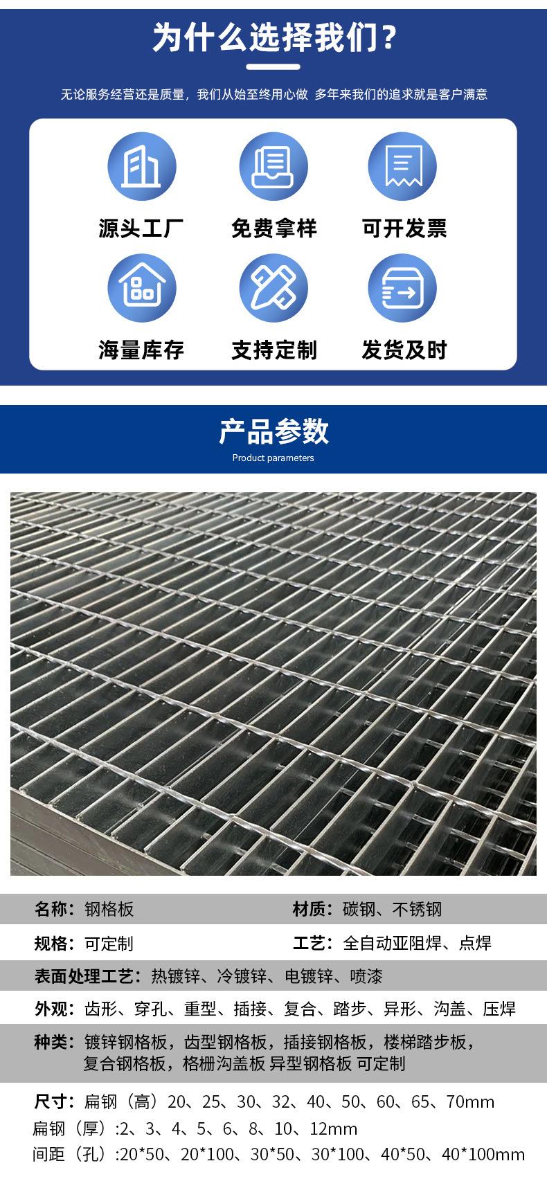 Rejilla de acero compuesta galvanizada por inmersión en caliente personalizada, plataforma de escalera con patrón de placa de escalón, placa de cubierta de zanja de drenaje para tratamiento de aguas residuales