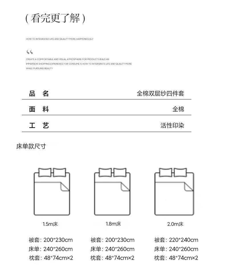 1.5m bed sheet four-piece set| Suitable for 200x230 quilt core, 1.8m bed sheet four-piece set| Suitable for 20...