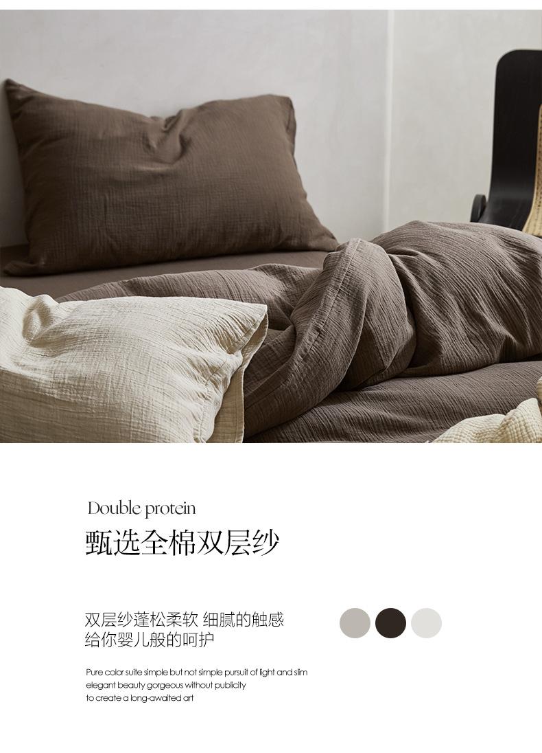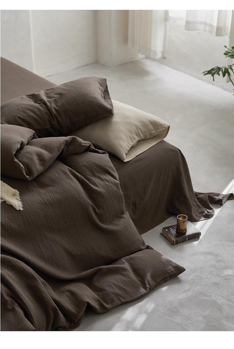 Juego de sábanas ajustables de cuatro piezas de algodón puro 100% de doble capa con hilo crepé para mujer, clase A, sencillas, de algodón puro