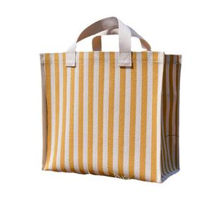 Bolsa sencilla japonesa a rayas para lonchera, trabajo, lona, bolsa pequeña, gran capacidad, para dama, bolsa diaria para compras, bolsa de almacenamiento