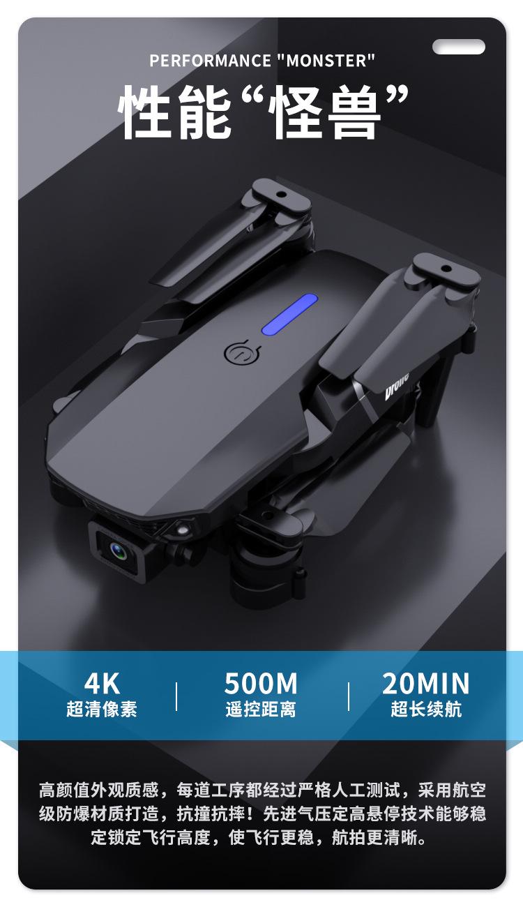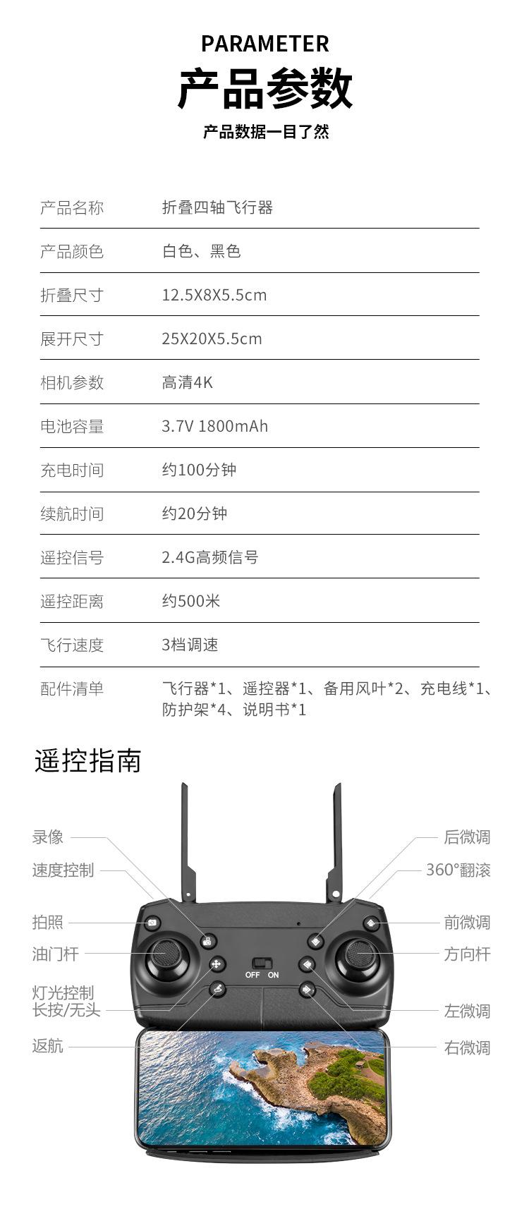 Fotografía Aérea con Dron 4K Cuadricóptero Plegable Flujo Óptico Aeronave con Control Remoto Juguete para Niños Mantenimiento Inteligente de Altitud 4K Alta Definición